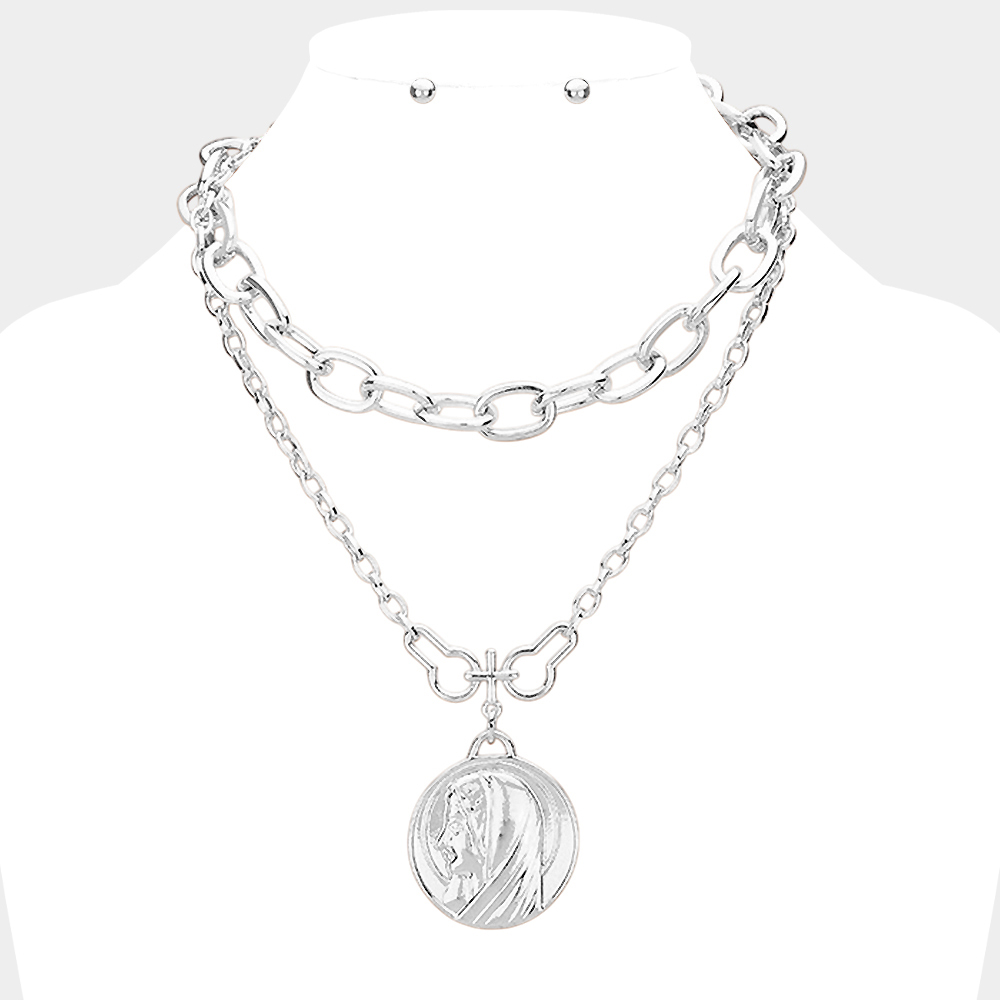 White Gold Dipped Metal Chain Triple Layered Bib Necklace
