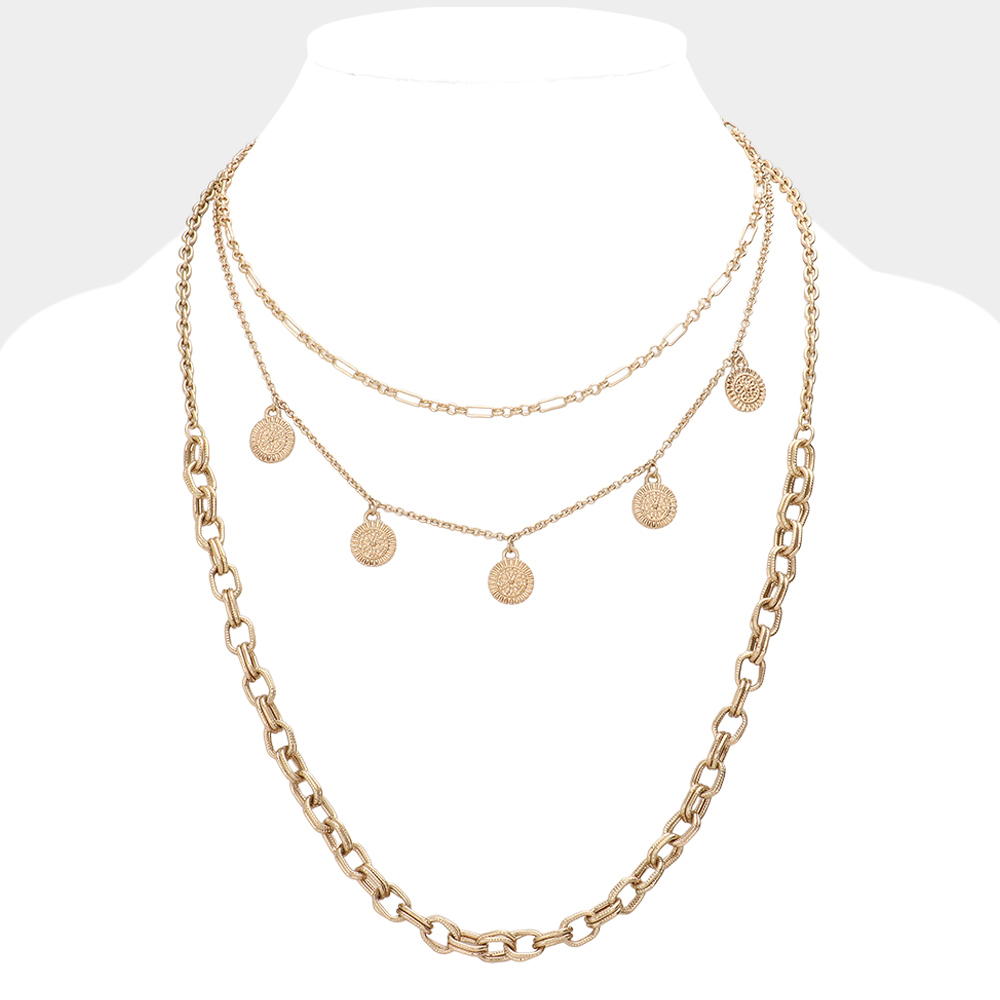 Double Layered Metal Cross Jesus Disc Drop Chain Tassel Necklace