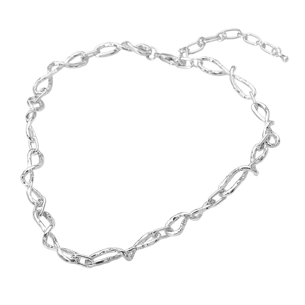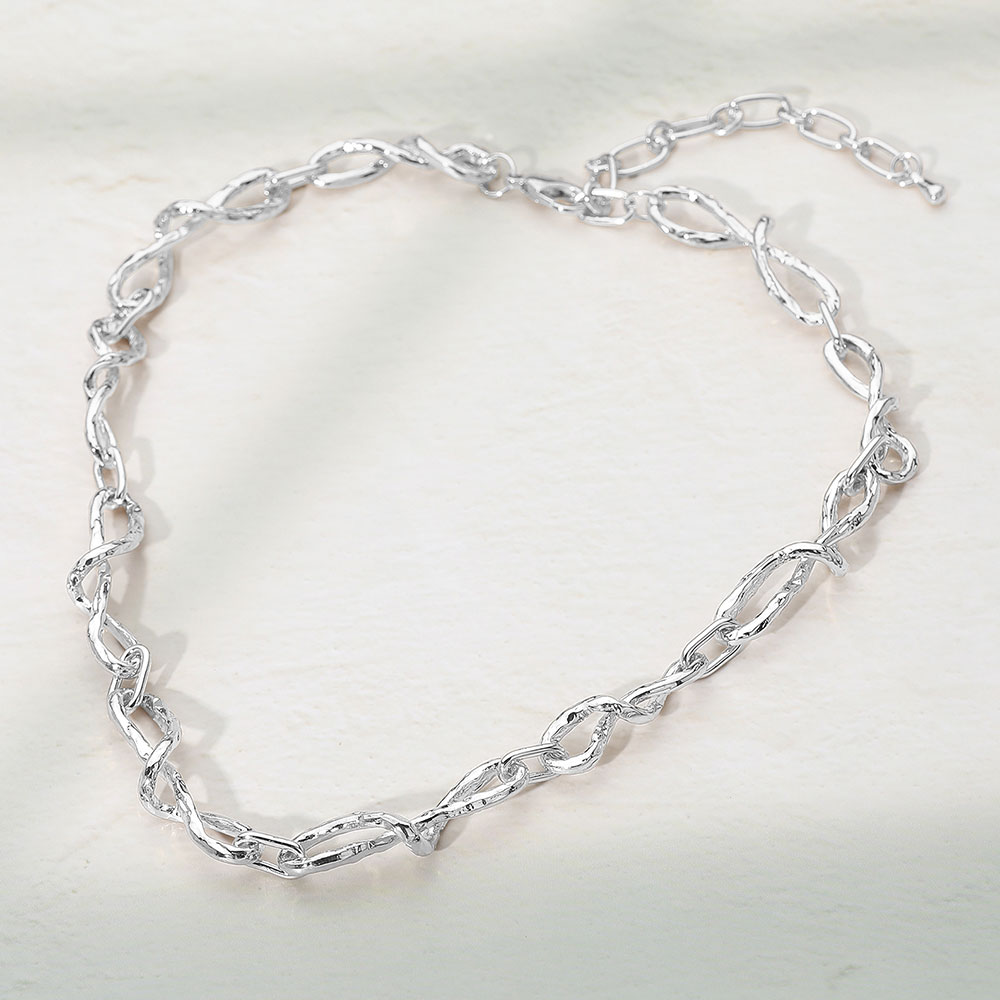 Details • Necklace Size : 15.5" + 3" L • Decor Size : 0.4" L • Add modern edge to your look with this twisted irregular chain necklace featuring unique textured links and a polished finish. Designed with an adjustable closure for a custom fit, this versatile piece is perfect for layering or wearing solo, making it an ideal statement for everyday style. • Lead and Nickel Compliant