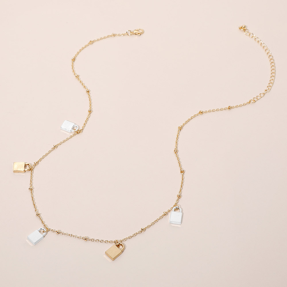 • Trendy mini padlock charm necklace designed with delicate dangling accents for a modern, edgy look. Perfect for layering or wearing solo, this necklace adds subtle statement style to everyday outfits and special occasions, making it a versatile choice for fashion-forward accessory collections.