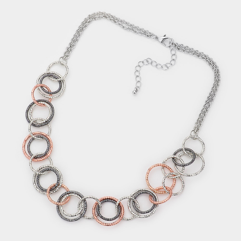 Resin Pebble Curved Metal Bar Beaded Long Necklace