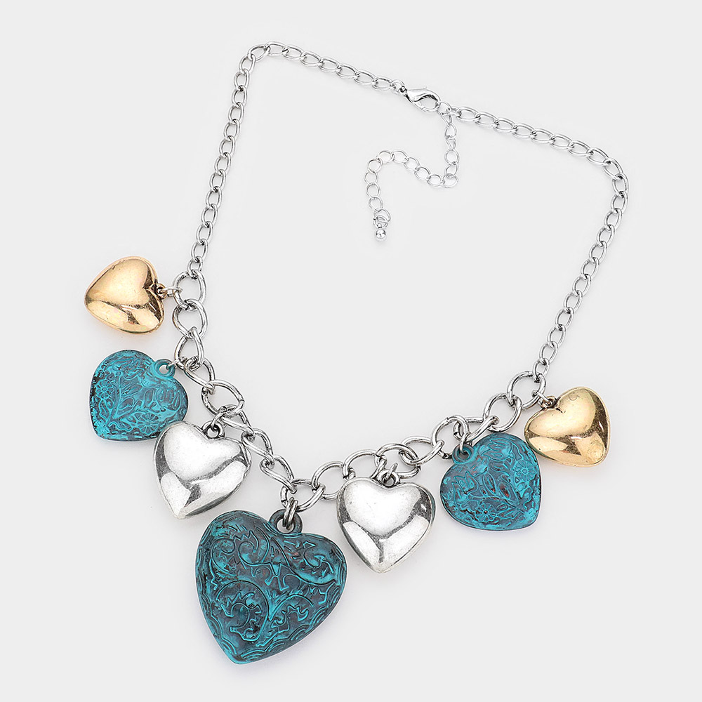 Multi Metal Heart Pendants Dangle Necklace