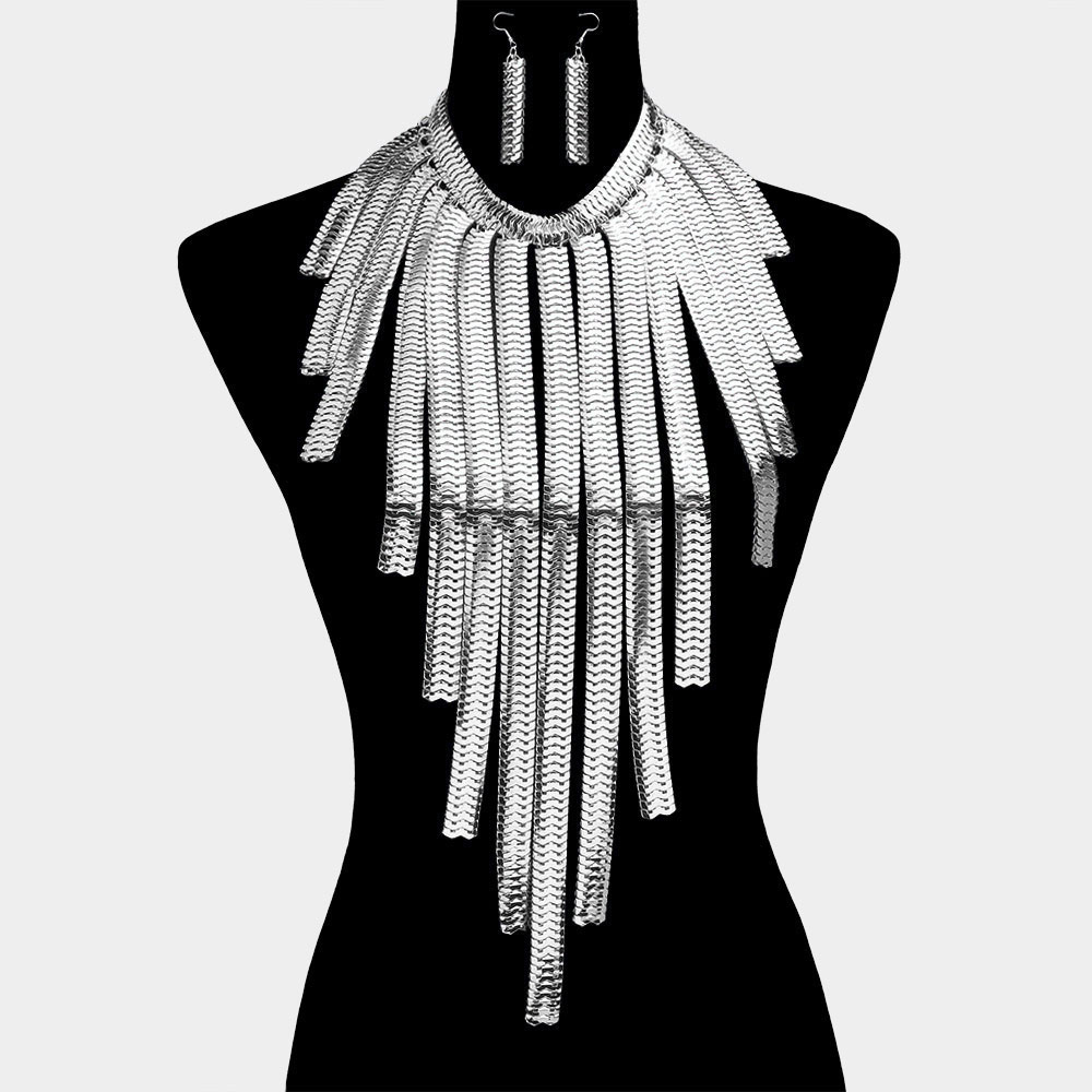 Thread Wrapped Oval Hoop Long Drop Chain Tassel Necklace
