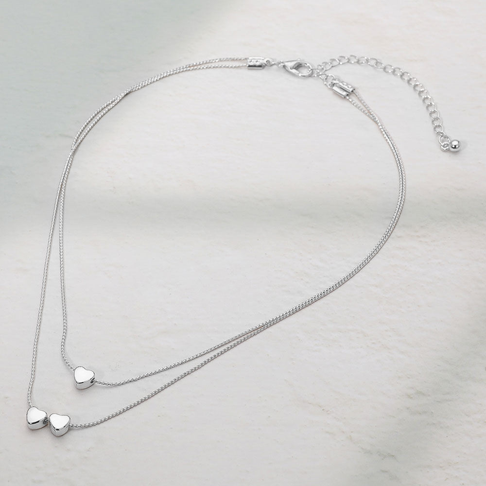 • Elegant layered heart necklace featuring dual chains with petite heart charms for a delicate, romantic look. Perfect for everyday elegance or special occasions, this dainty design adds a touch of charm and love-inspired sophistication to any outfit.