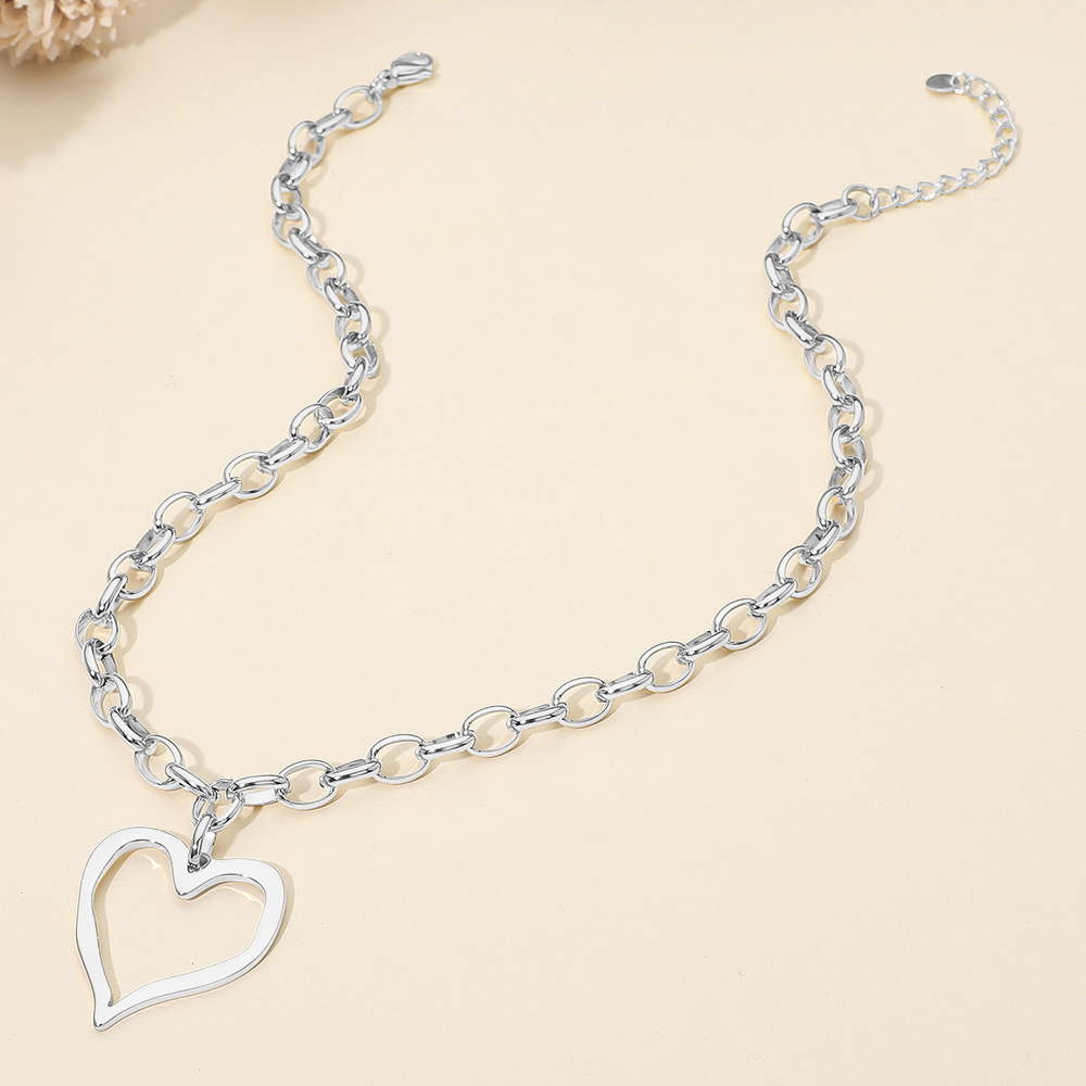 SECRET BOX_Stainless Steel Chunky Open Heart Pendant Chain Necklace