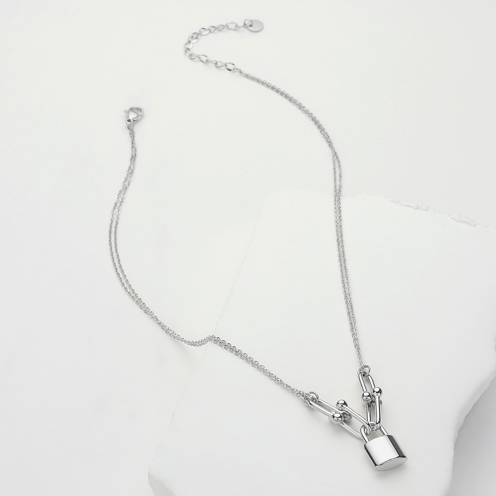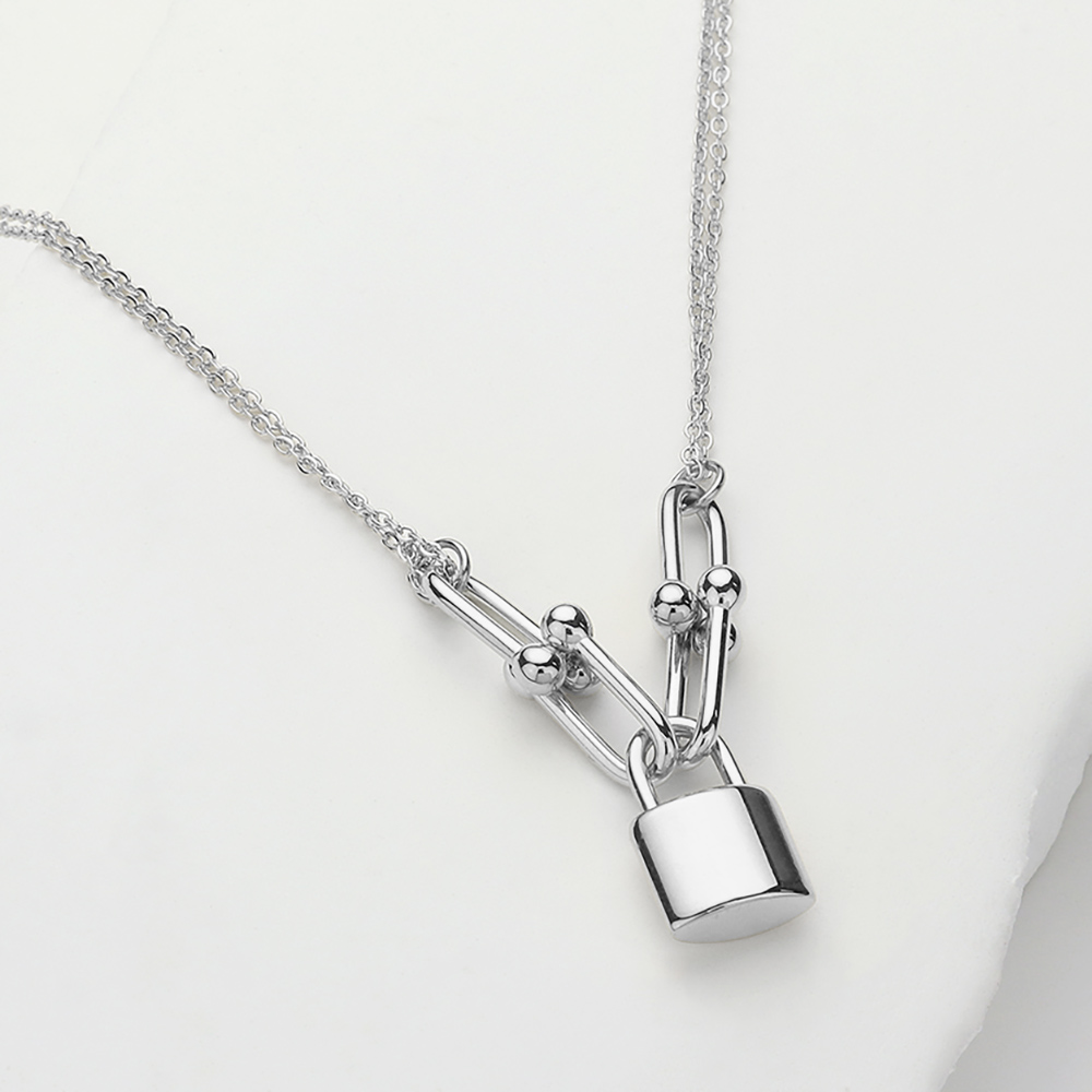 SECRET BOX_Stainless Steel Lock Pendant Hardware Link Double Layered Necklace