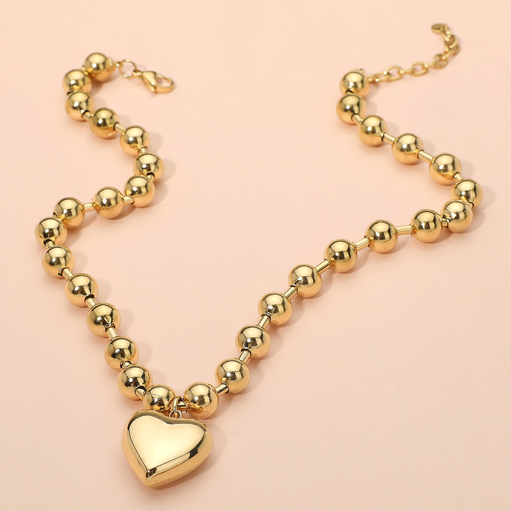 Details • Necklace Size : 18.5" + 2.25" L • Decor Size : 1.4" L • This beaded chain necklace features a bold heart pendant suspended from polished spherical links. A romantic yet modern piece, it’s perfect for adding charm and personality to any outfit. Wear it solo as a statement or layer it for a trend-forward look. • Stainless Steel