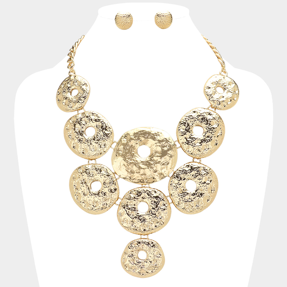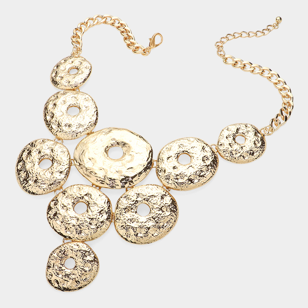 Textured Metal Donut Chandelier Pointed Statement Necklace
