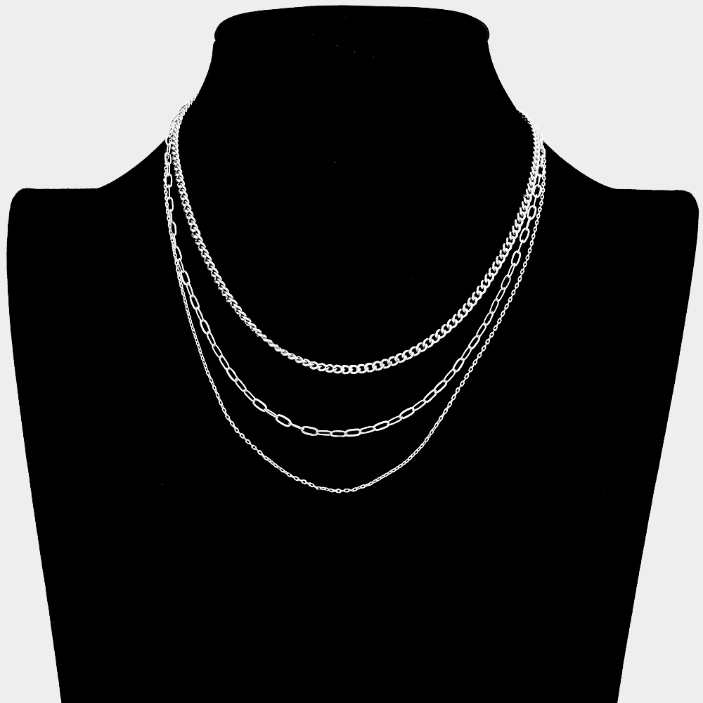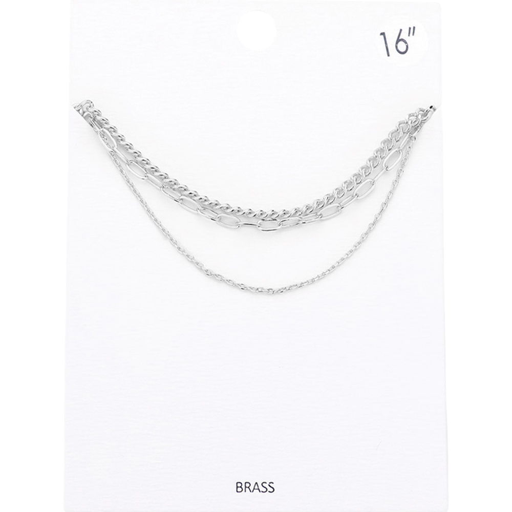 Stainless Steel CZ Embellished Metal Chain Link Necklace
