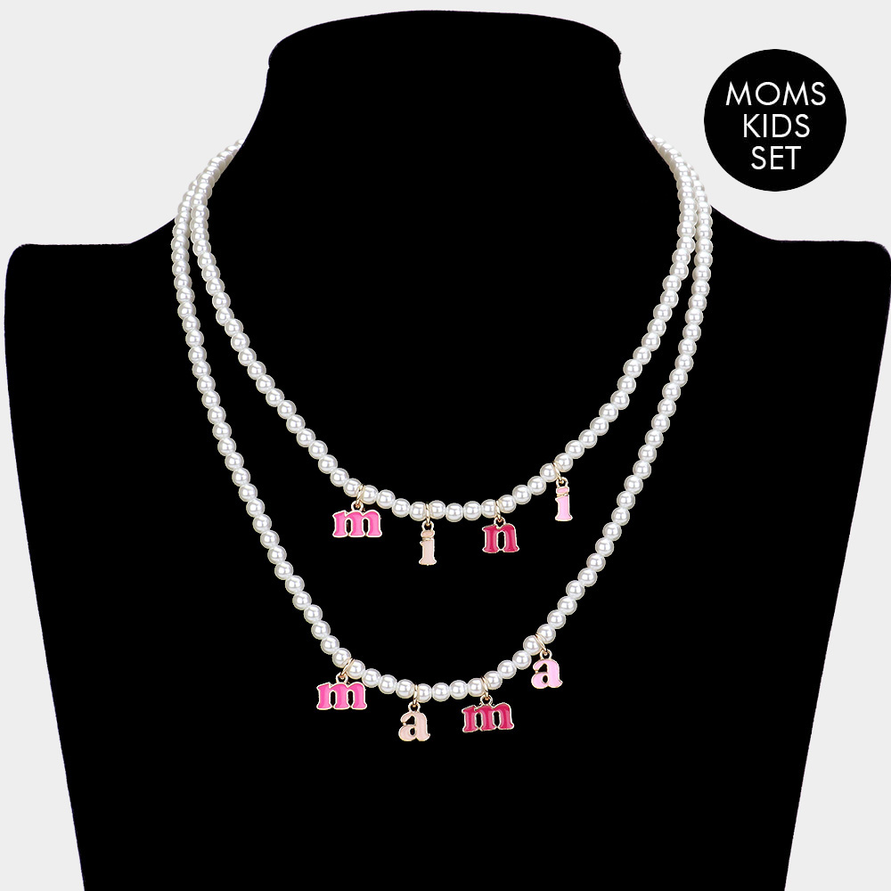 2PCS -mini mama Pendant Moms and Kids Set Pearl Necklaces