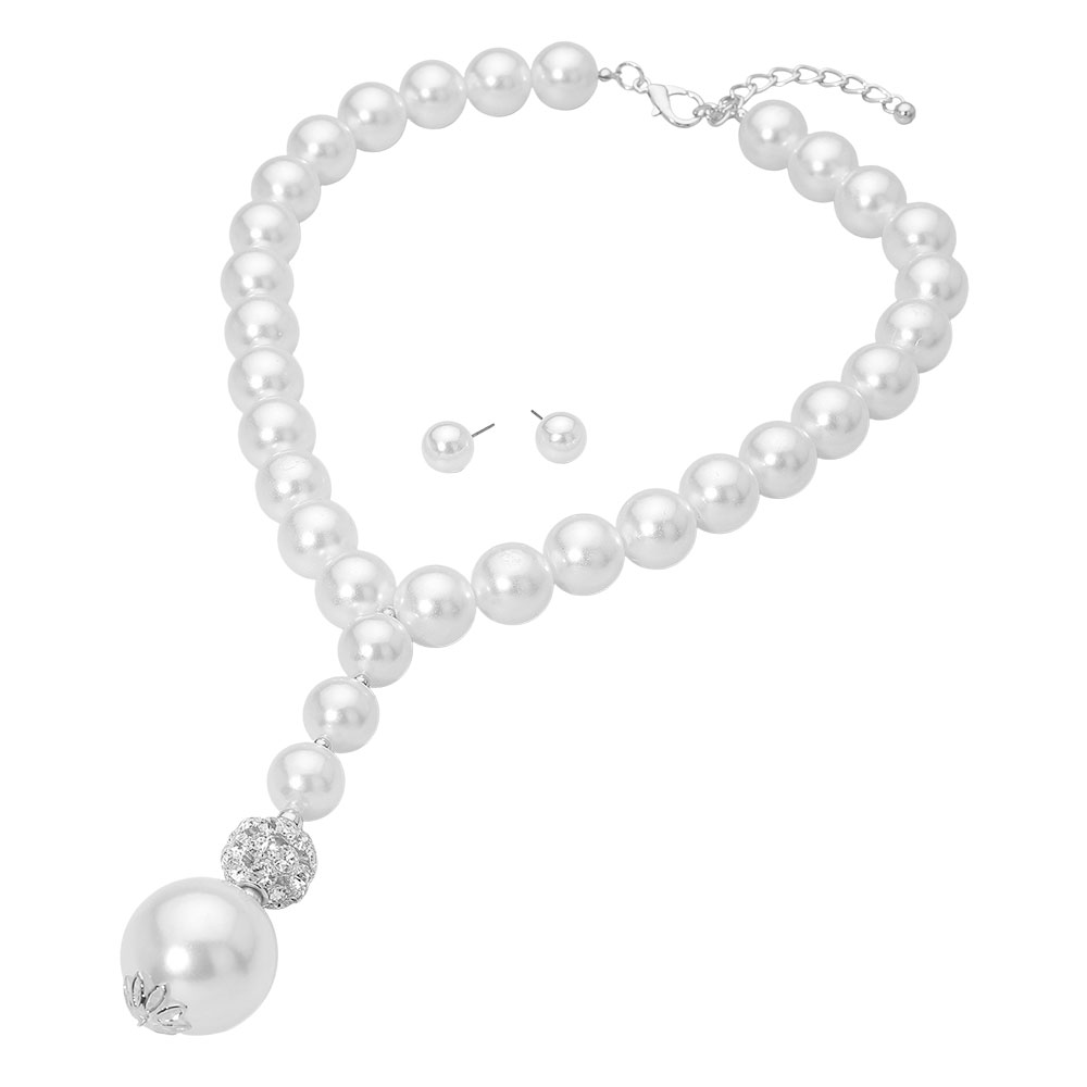 Details • Necklace Size : 20.5" + 3" L • Decor Size : 4.75" L • Earrings Size : 0.5" L • Elegant beaded Y necklace set featuring a statement drop accent and matching stud earrings, perfect for formal events or polished looks. Designed to add sophistication and style, this set enhances any outfit with classic charm and refined detail. • Lead and Nickel Compliant