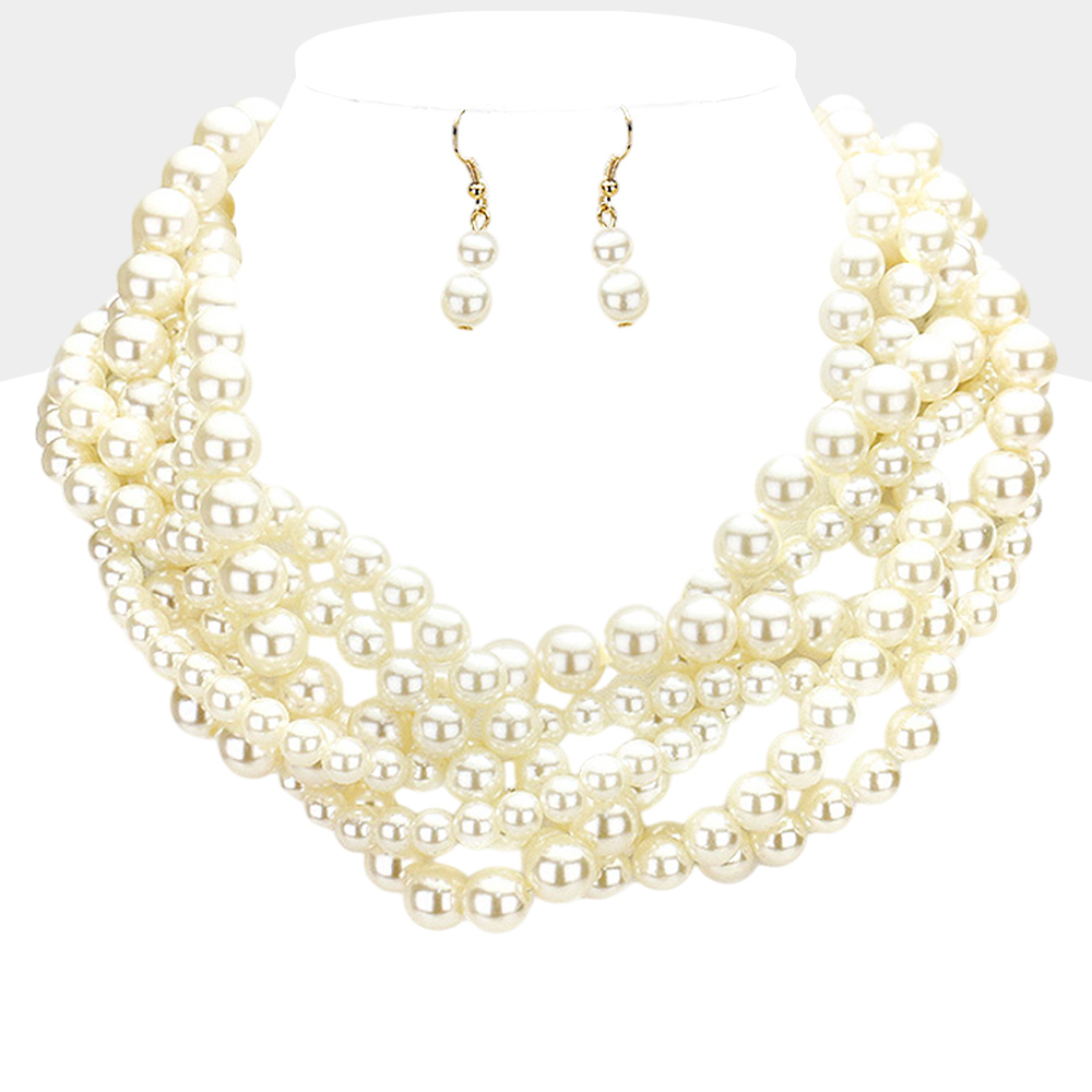 -H- Initial Monogram Pearl Beaded Watch Printed Long Necklace