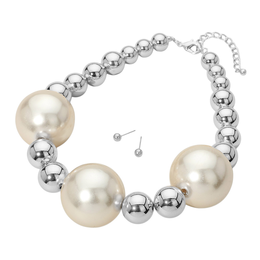 Details • Necklace Size : 18" + 3" L • Decor Size : 1.6" L • Earrings Size : 0.2" L • Bold and modern beaded necklace featuring oversized glossy spheres in an alternating design. Includes matching stud earrings for a complete, eye-catching accessory perfect for events or everyday glam. • Lead and Nickel Compliant