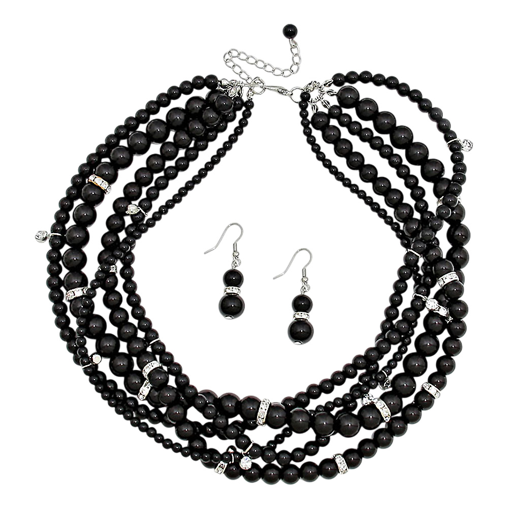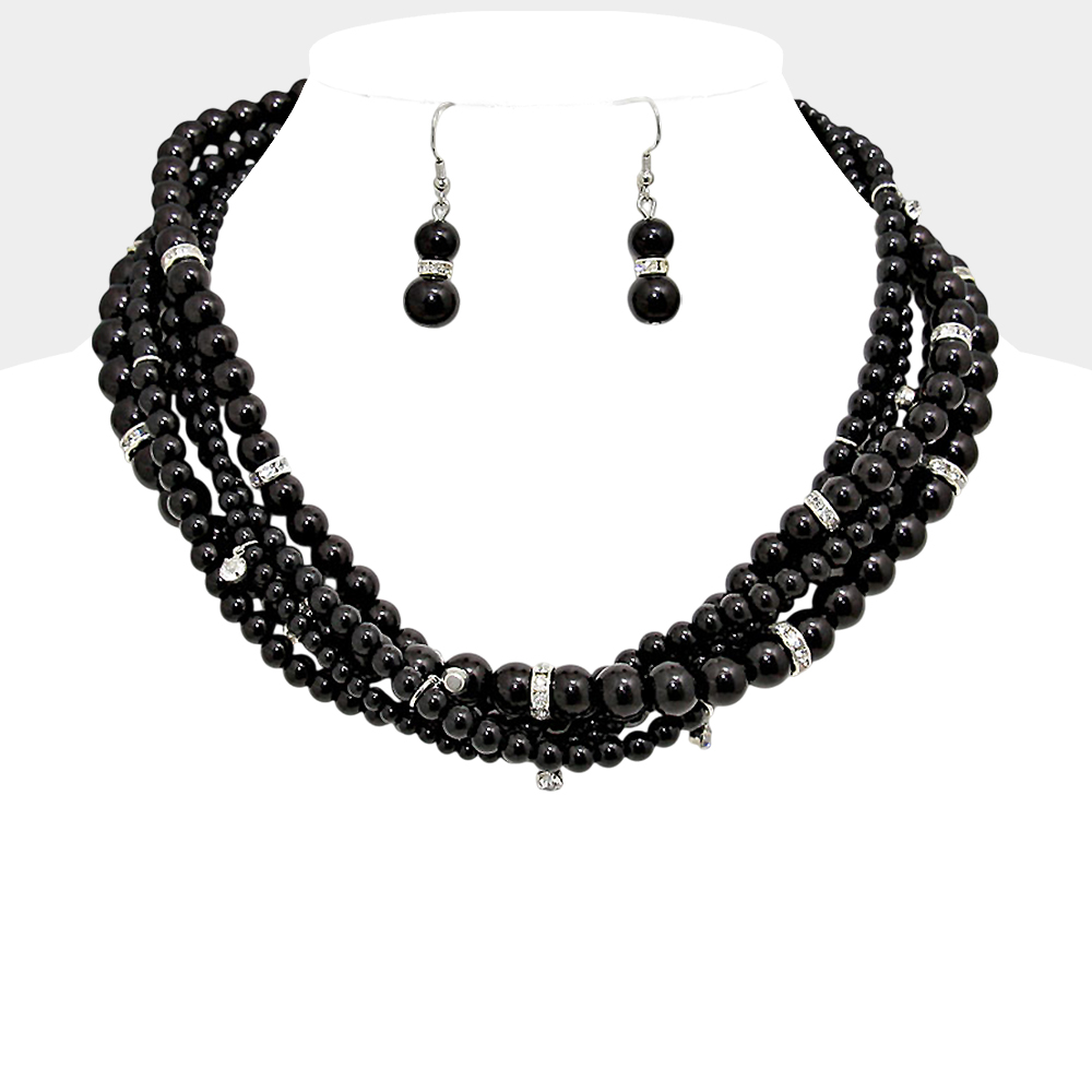 3PCS - Rhinestone Pave Metal Necklace Jewelry Set