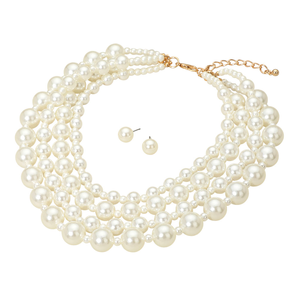 • Elevate your style with this Layered Pearl Necklace and Earring Set featuring multi-strand layers that create a timeless statement look. Perfect for weddings, galas, or formal occasions, this classic design adds sophistication and radiant charm to any ensemble.