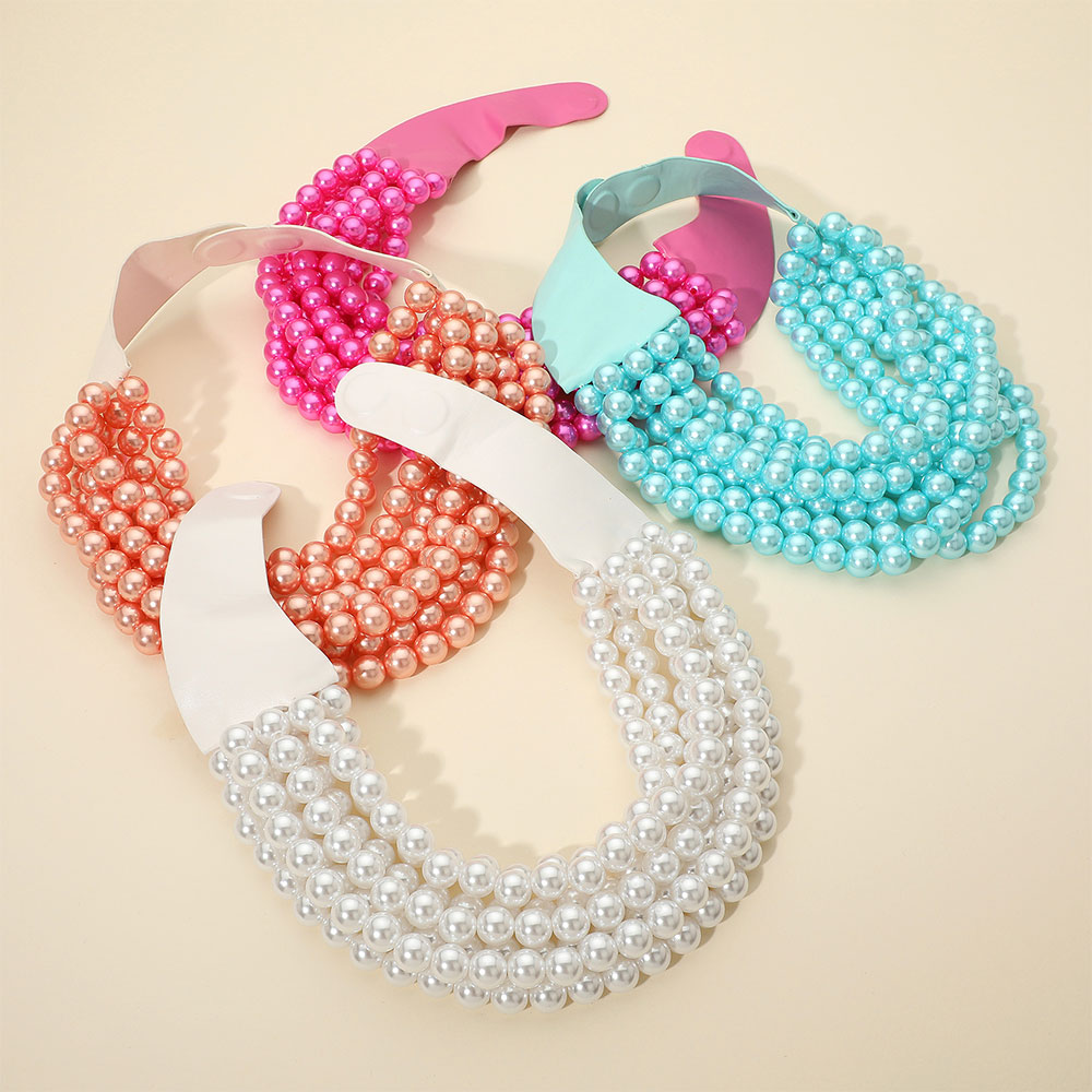 Multi Layered Pearl Beaded Collar Magnetic Necklace