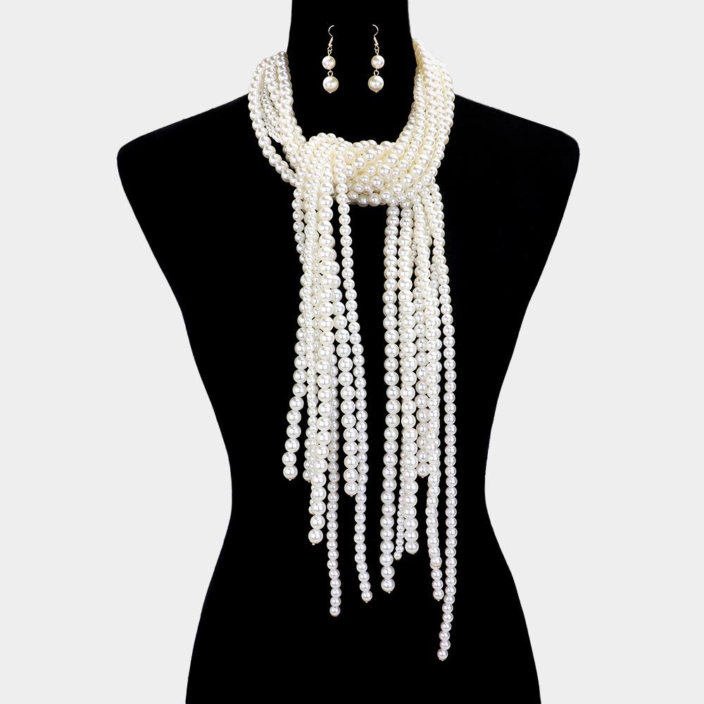 Thread Wrapped Oval Hoop Long Drop Chain Tassel Necklace