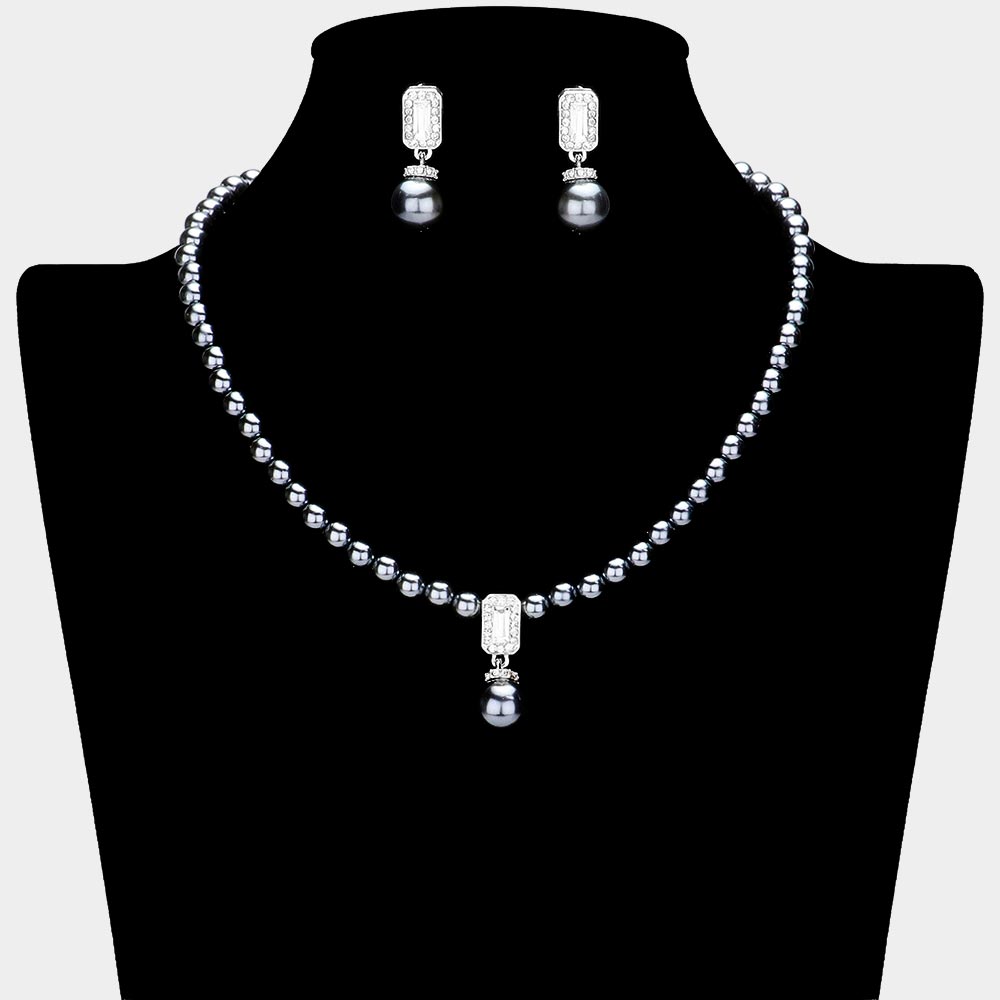 Pearl Centered Stone Paved Pendant Pointed Necklace