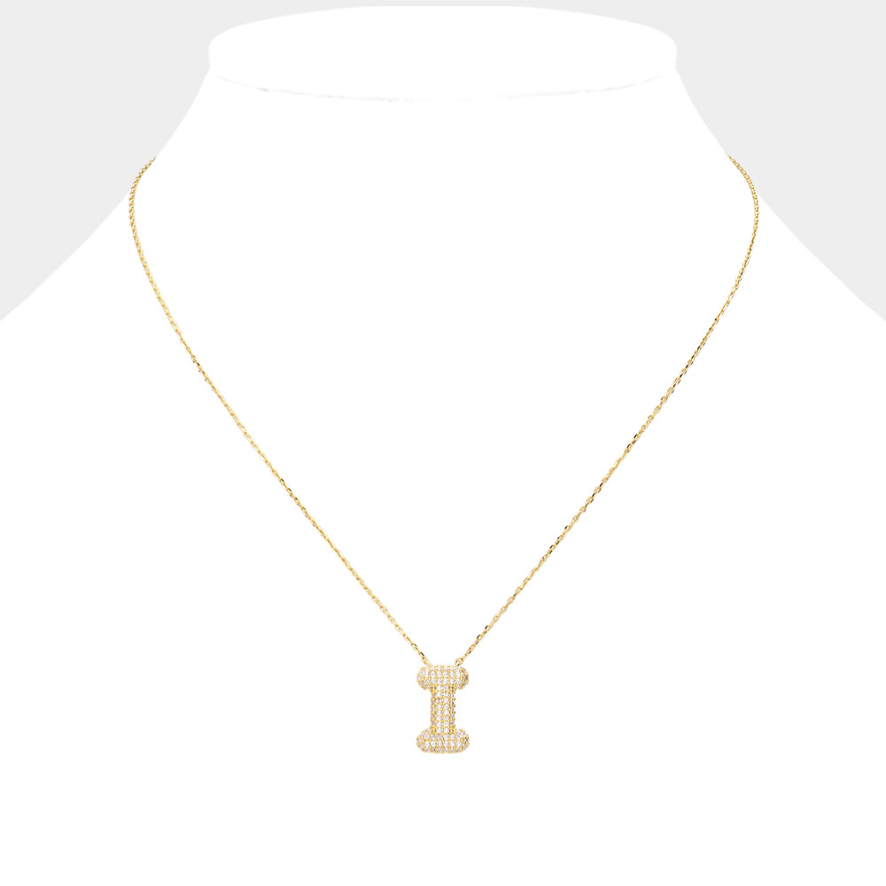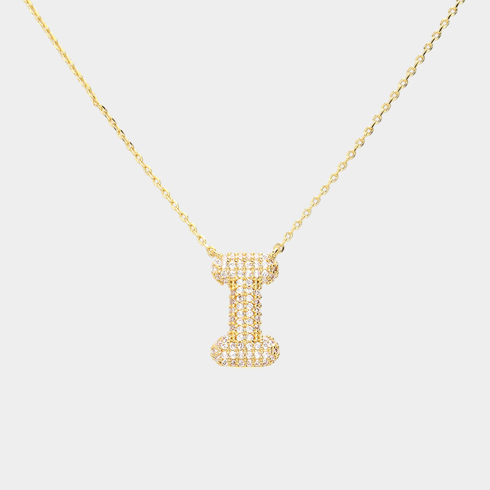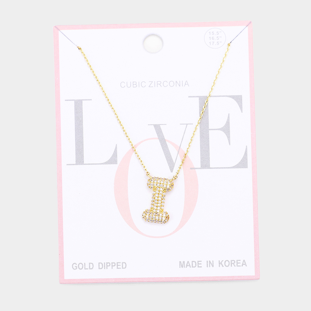 Details • Necklace Size : 15.5" + 2" L • Pendant Size : 0.3" X 0.65" • Letter I • Lead and Nickel Compliant • Made In Korea • Gold Dipped • CZ Cubic Zirconia