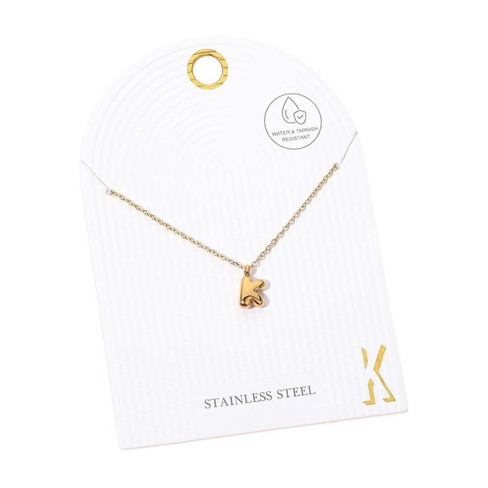 Details • Necklace Size : 18" L • Pendant Size : 0.3" L • Chic stainless steel necklace featuring a minimalist initial monogram pendant. Designed for everyday wear, this water and tarnish resistant piece adds a personal touch and effortless elegance to any outfit. • Stainless Steel