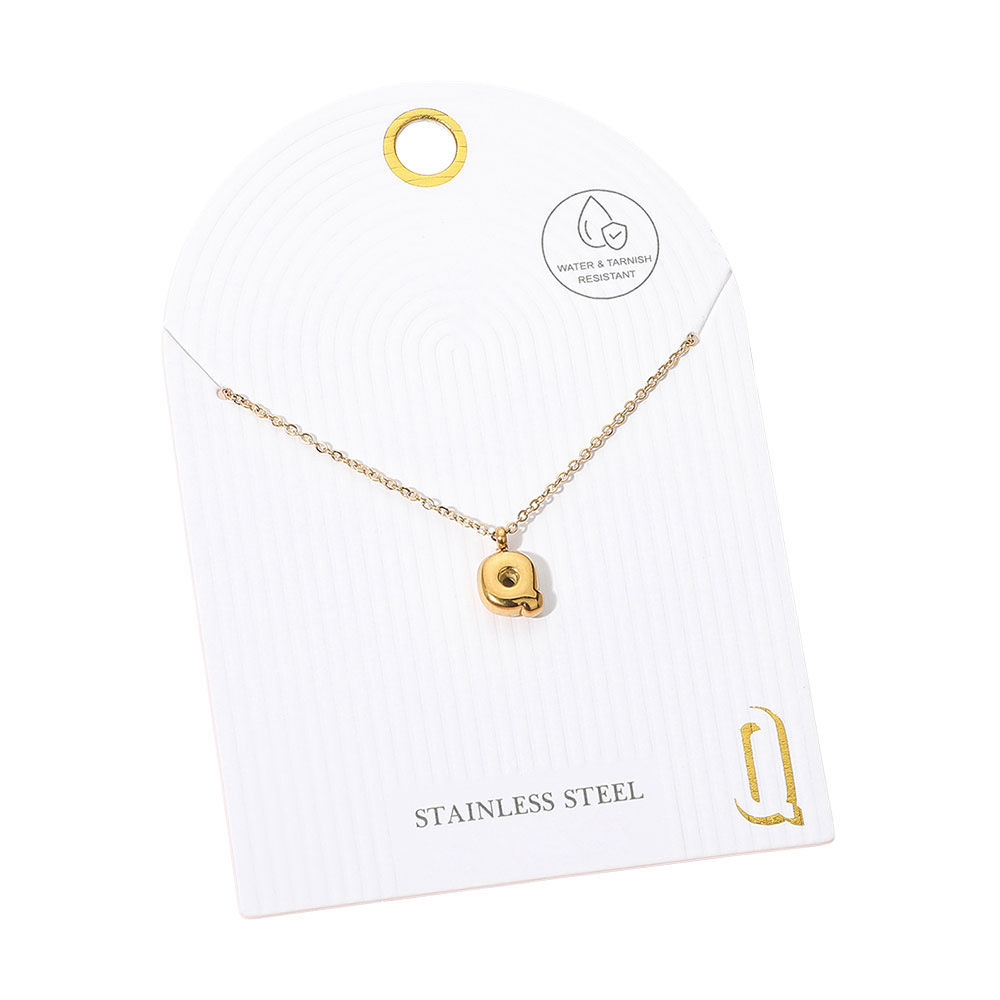 Details • Necklace Size : 18" L • Pendant Size : 0.3" L • Chic stainless steel necklace featuring a minimalist initial monogram pendant. Designed for everyday wear, this water and tarnish resistant piece adds a personal touch and effortless elegance to any outfit. • Stainless Steel