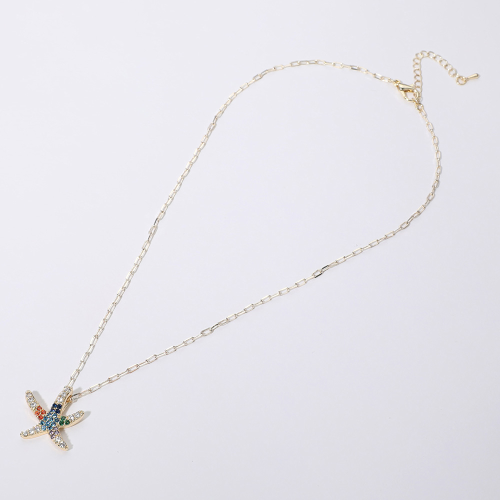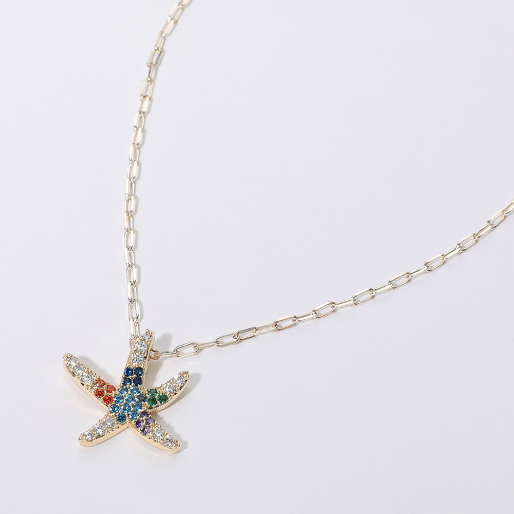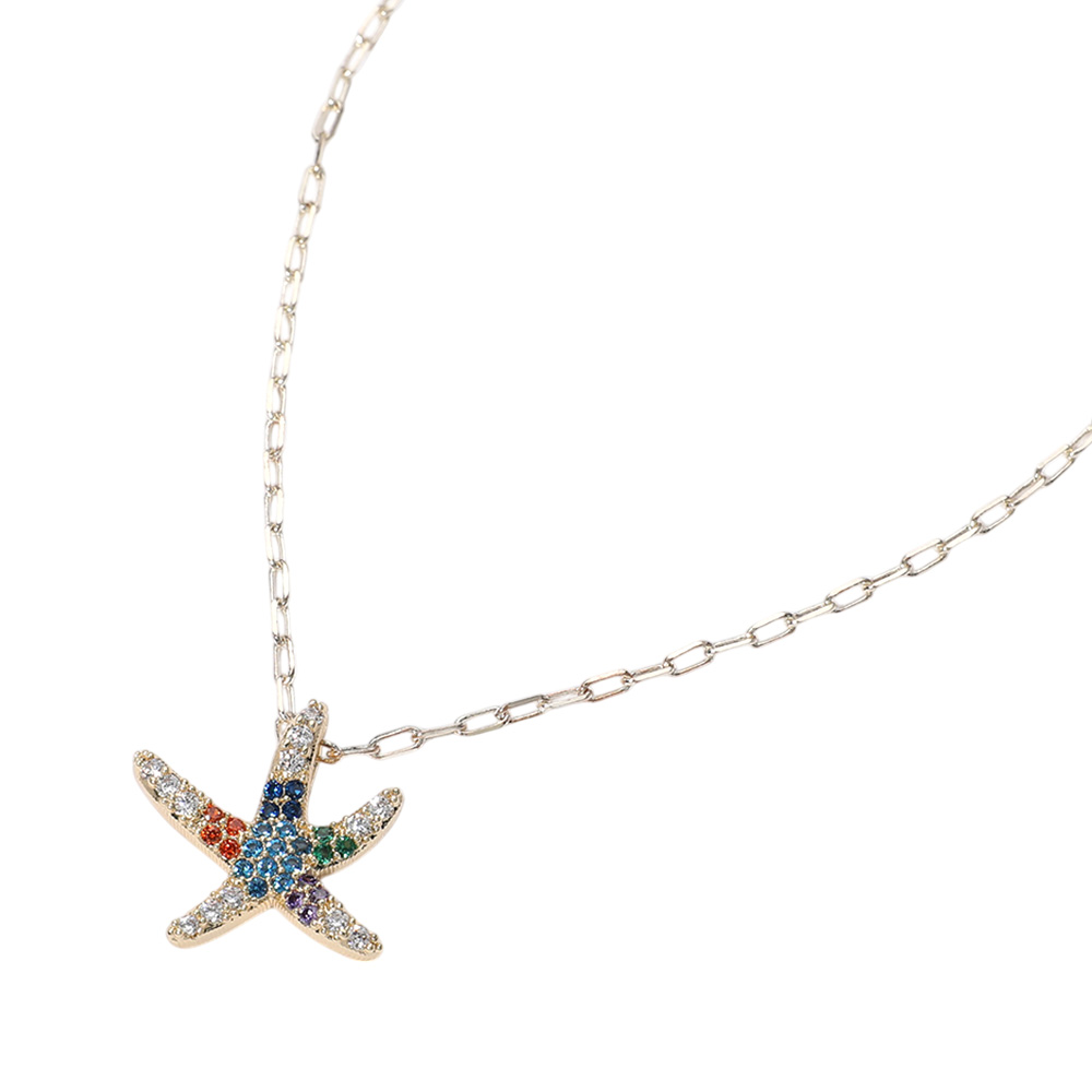 14K Gold Plated CZ Stone Paved Starfish Pendant Necklace