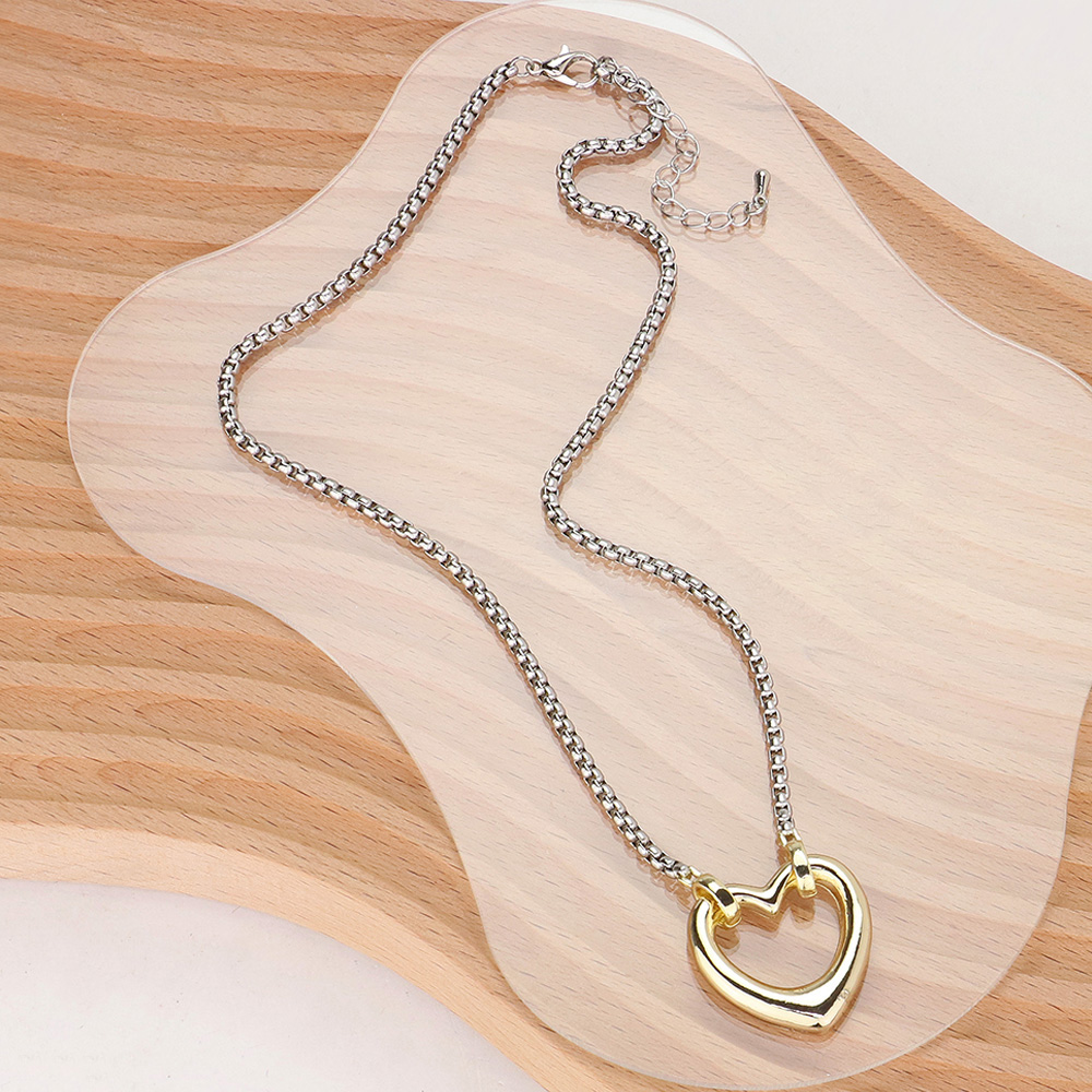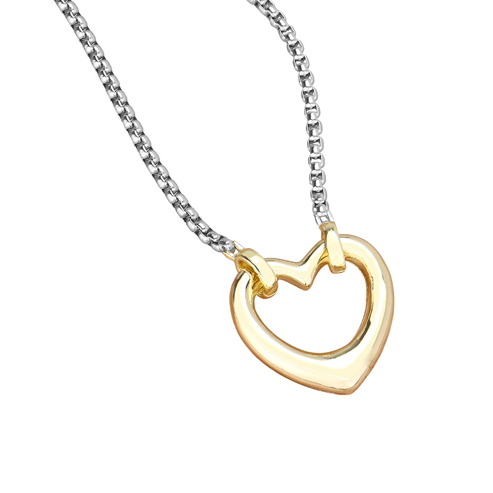 14K Gold Plated Two Tone Open Heart Pendant Necklace
