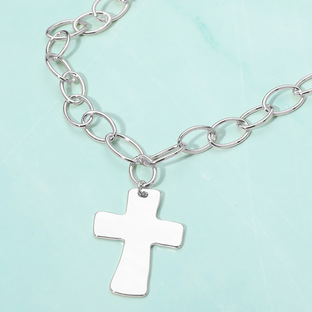 Details • Necklace Size : 18" + 3.25" L • Pendant Size : 1.25" X 2" • Make a bold statement with this chunky chain necklace featuring a sleek cross pendant. Perfect for layering or wearing solo, this faith-inspired accessory combines modern edge with timeless symbolism, offering a powerful look that’s versatile for casual outings, special events, or meaningful gifts. • Gold Dipped • Lead and Nickel Compliant • Made In Korea