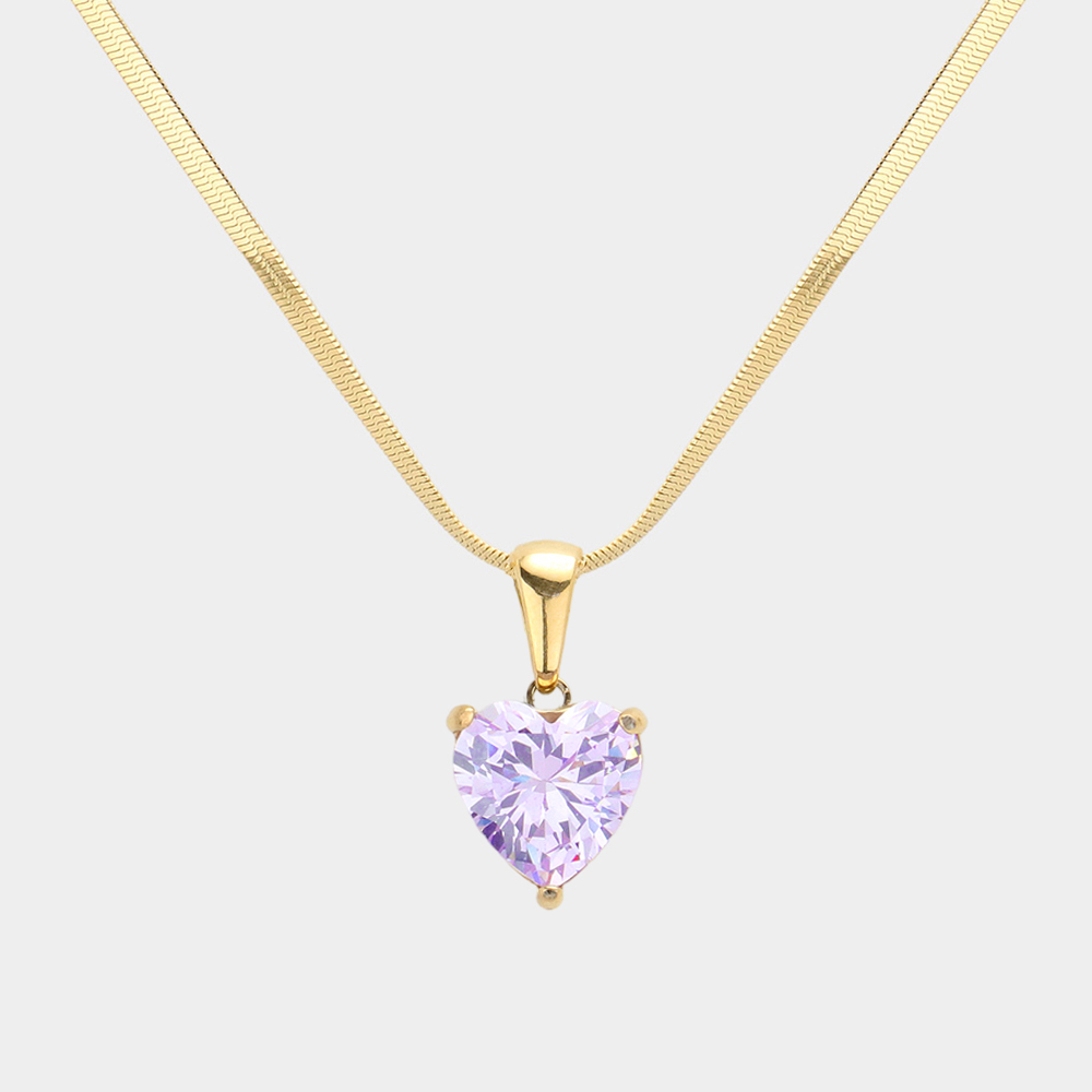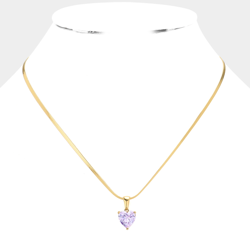 CZ Heart Stone Pendant Necklace