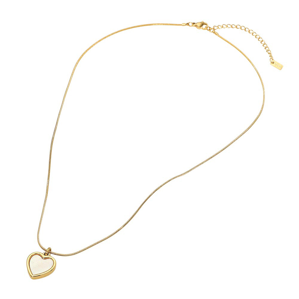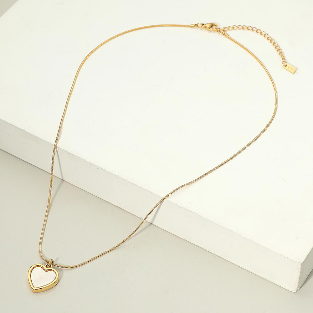 Stainless Steel Mother of Pearl Heart Pendant Necklace