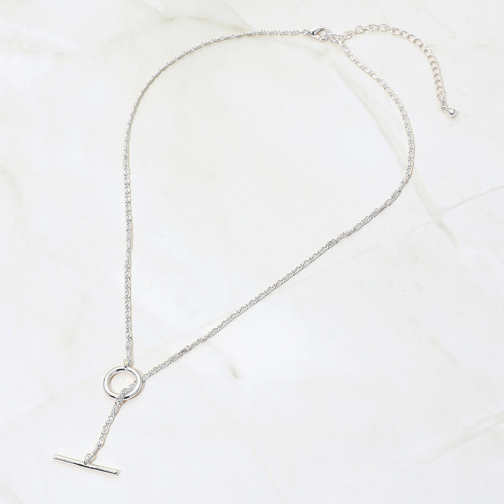 Details • Necklace Size : 17" + 3.5" L • Pendant Size : 0.8" L • Modern toggle pendant necklace featuring a stylish circle and bar design on a delicate chain. Its contemporary look makes it a versatile accessory for layering or wearing solo, perfect for casual elegance or adding a refined touch to dressy outfits, making it a thoughtful gift choice too. • Gold Dipped • Lead and Nickel Compliant