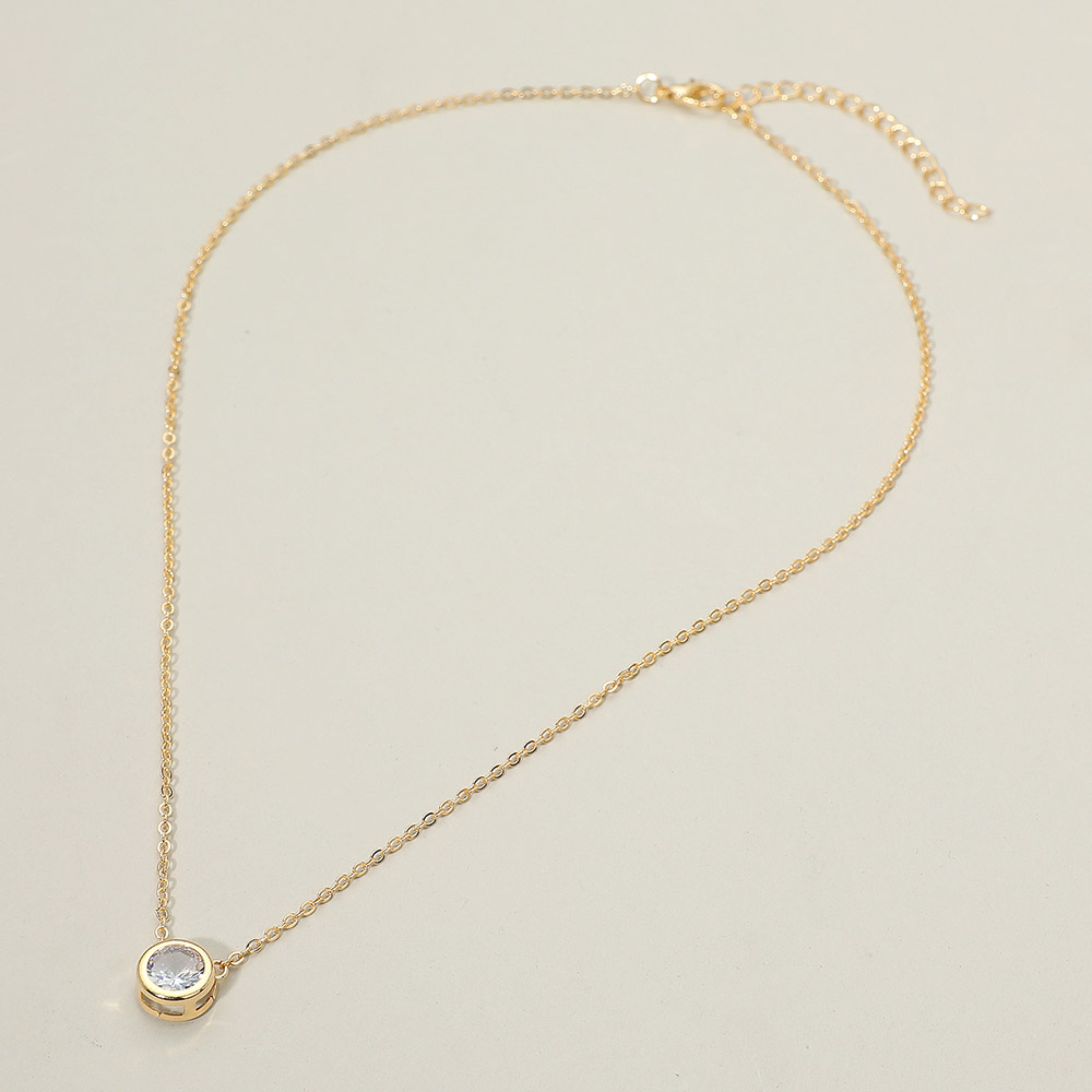 • Minimalist pendant necklace featuring a single round-cut stone set in a sleek bezel frame. Its delicate chain and timeless design add refined sparkle, making it a versatile accessory perfect for everyday wear or elegant layering with other jewelry pieces.