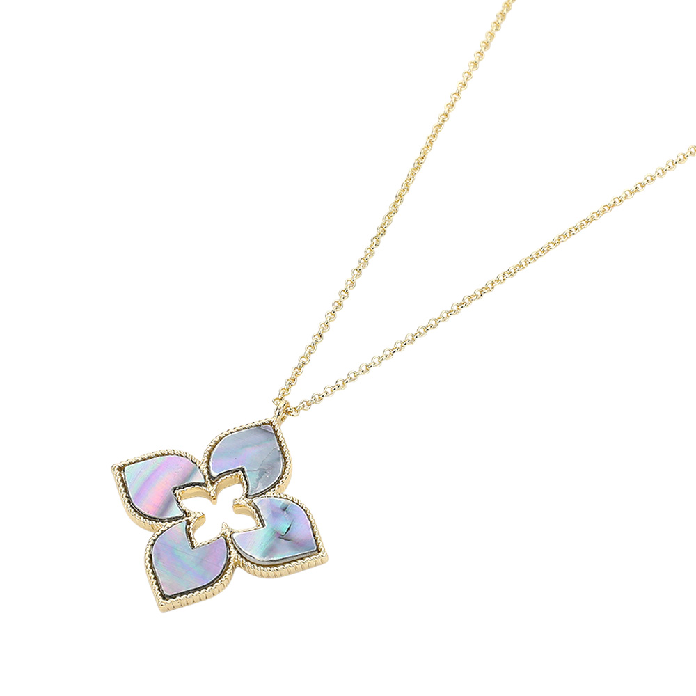 Stainless Steel Ball Stone Paved Mother of Pearl Clover Charm Beaded Stretch Bracelet