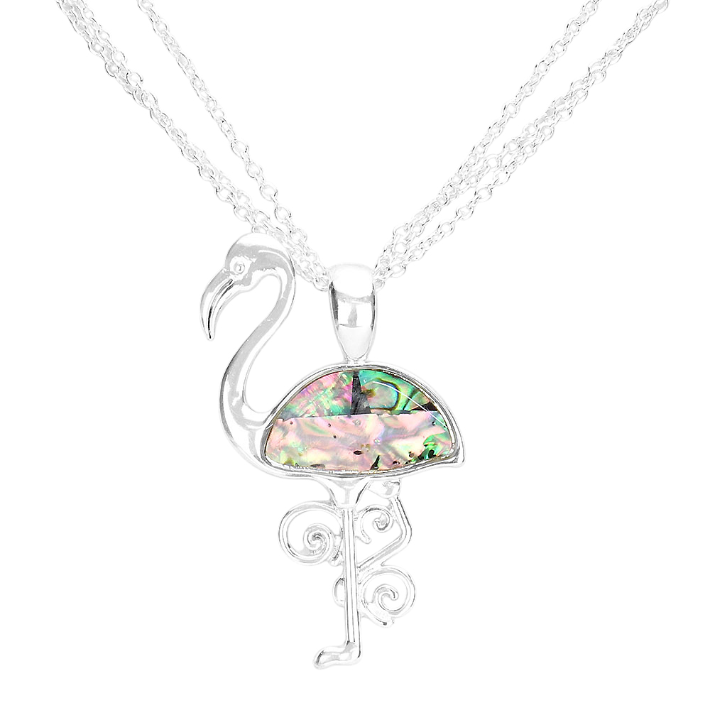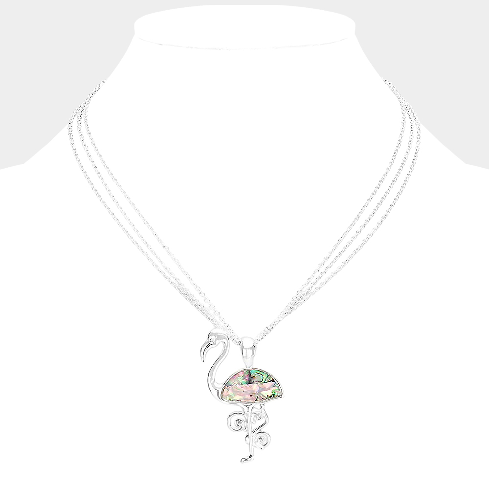 Abalone Metal Flamingo Pendant Triple Chain Layered Necklace