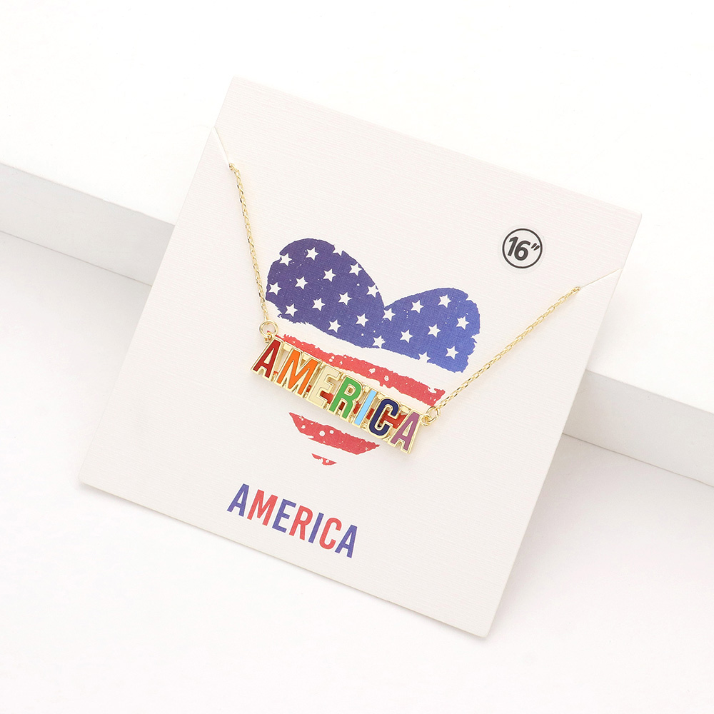 Stone Paved Star Pointed Enamel VOTE Message Pendant Necklace