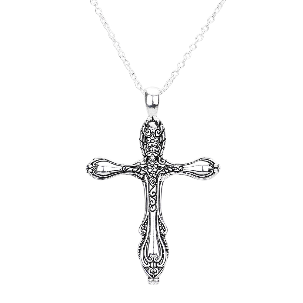 Leaf Vine Pointed Abalone Cross Pendant Necklace