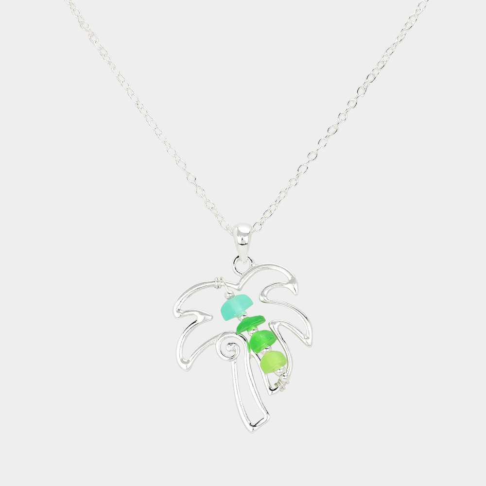 Bean Beads Accented Metal Wire Palm Tree Pendant Necklace