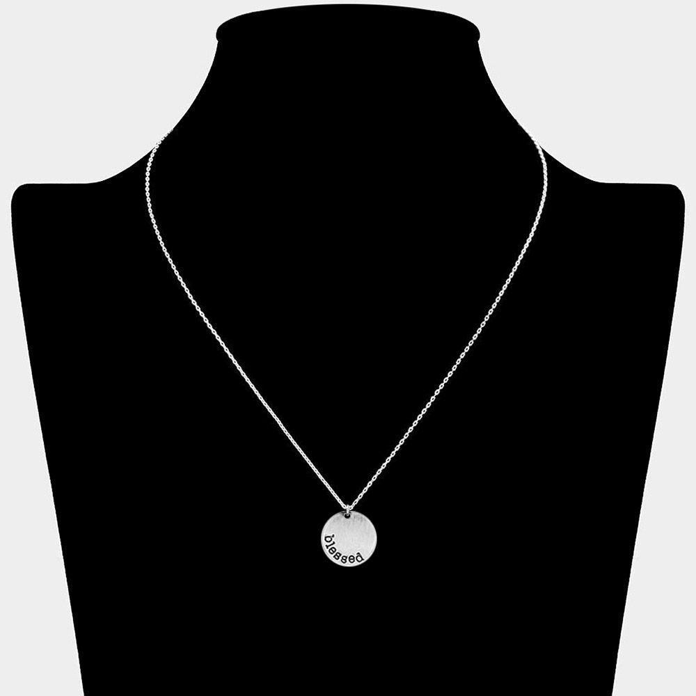 Details • Necklace Size : 16" + 3" L • Pendant Size : 0.7" X 0.7" • Pouch Bag Size : 2.75" X 3.5" • Celebrate gratitude and positivity with this engraved pendant necklace featuring the meaningful word “Blessed.” A simple yet powerful accessory, it serves as a daily reminder of joy and thankfulness. Perfect as a thoughtful gift or personal keepsake, complete with a pouch for easy gifting. • Lead and Nickel Compliant
