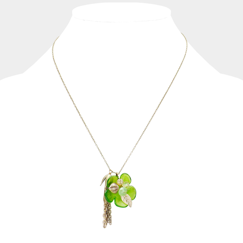 Flower CZ Stone Pointed Teardrop Dangle Evening Earrings