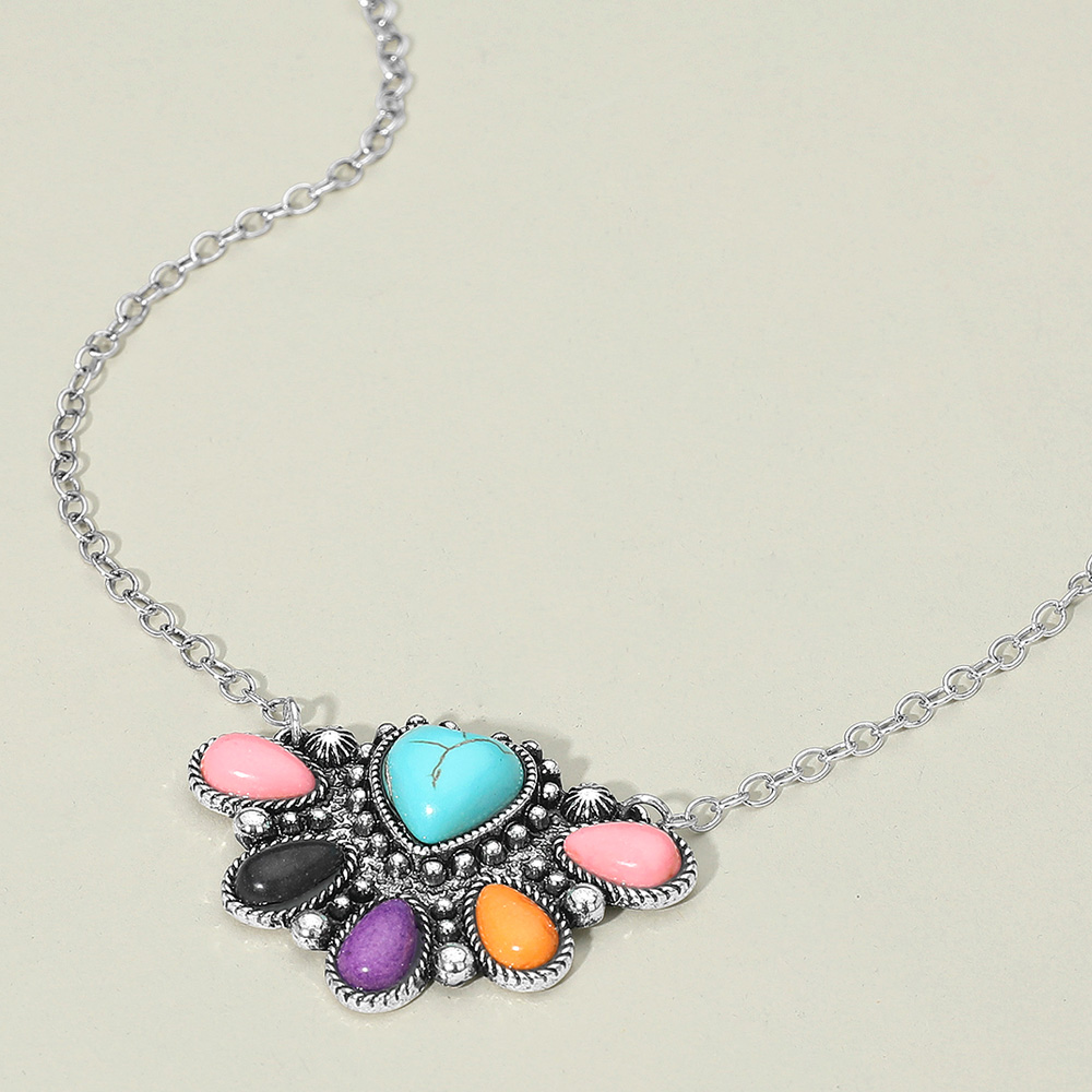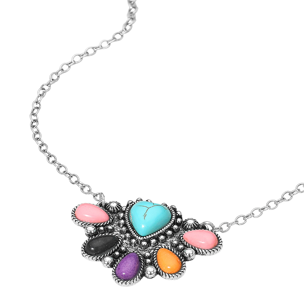 Boho Southwestern Multi Color Stone Fan Pendant Necklace Boho Southwestern Multi Color Stone Fan Pendant Necklace Boho Southwestern Multi Color Stone Fan Pendant Necklace