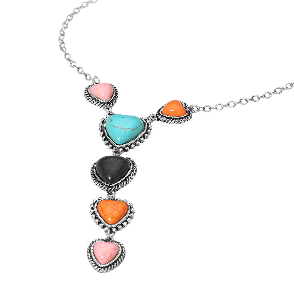 Details • Necklace Size : 18" + 3.5" L • Pendant Size : 1.75" X 4" • Elevate your outfit with this vintage-inspired heart pendant necklace featuring a tiered drop design. Perfect for adding bold charm and personality to your style. • Lead and Nickel Compliant