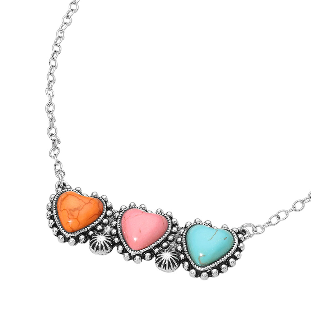 Boho Western Triple Heart Pendant Necklace Boho Western Triple Heart Pendant Necklace Boho Western Triple Heart Pendant Necklace