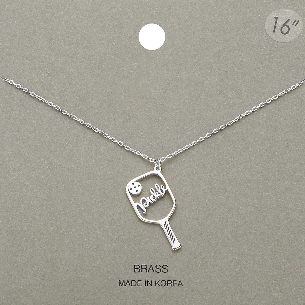 Lets Play Message Enamel Pickleball Pearl Charm Station Necklace