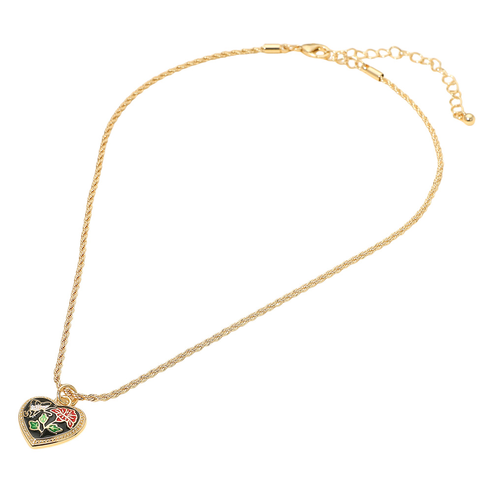 Details • Necklace Size : 16" + 3.5" L • Pendant Size : 0.75" X 0.8" • Add charm to your jewelry collection with this heart pendant necklace featuring a delicate floral enamel design on a fine chain. Perfect for gifting or styling with casual and dressy looks, this necklace brings elegance, color, and timeless appeal to any outfit. • Brass • Lead and Nickel Compliant