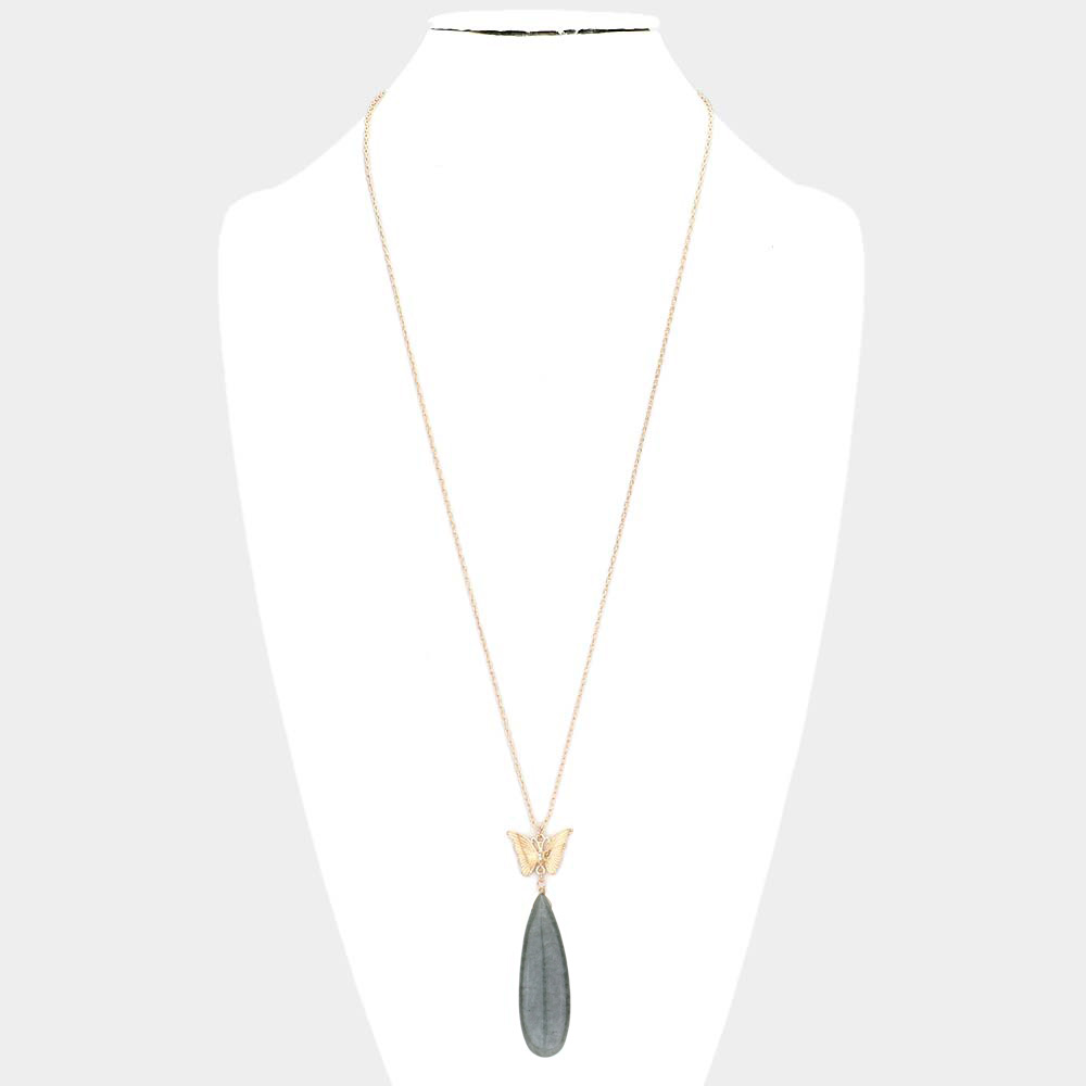 Butterfly Natural Stone Teardrop Link Pendant Long Necklace