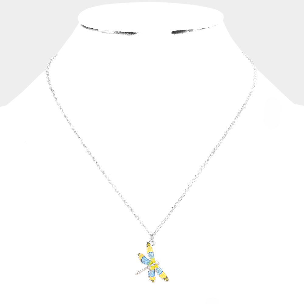 Butterfly Natural Stone Teardrop Link Pendant Long Necklace