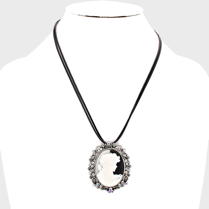 Crystal Accented Cameo Necklace