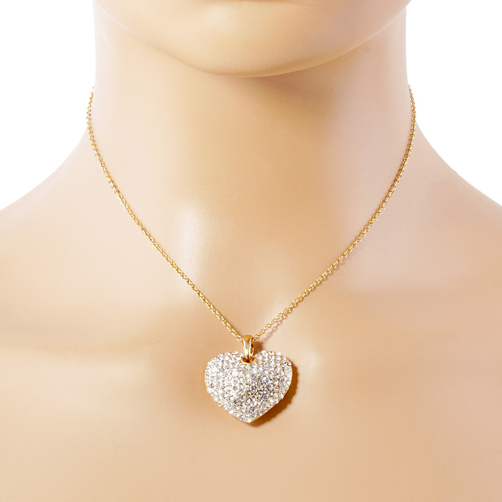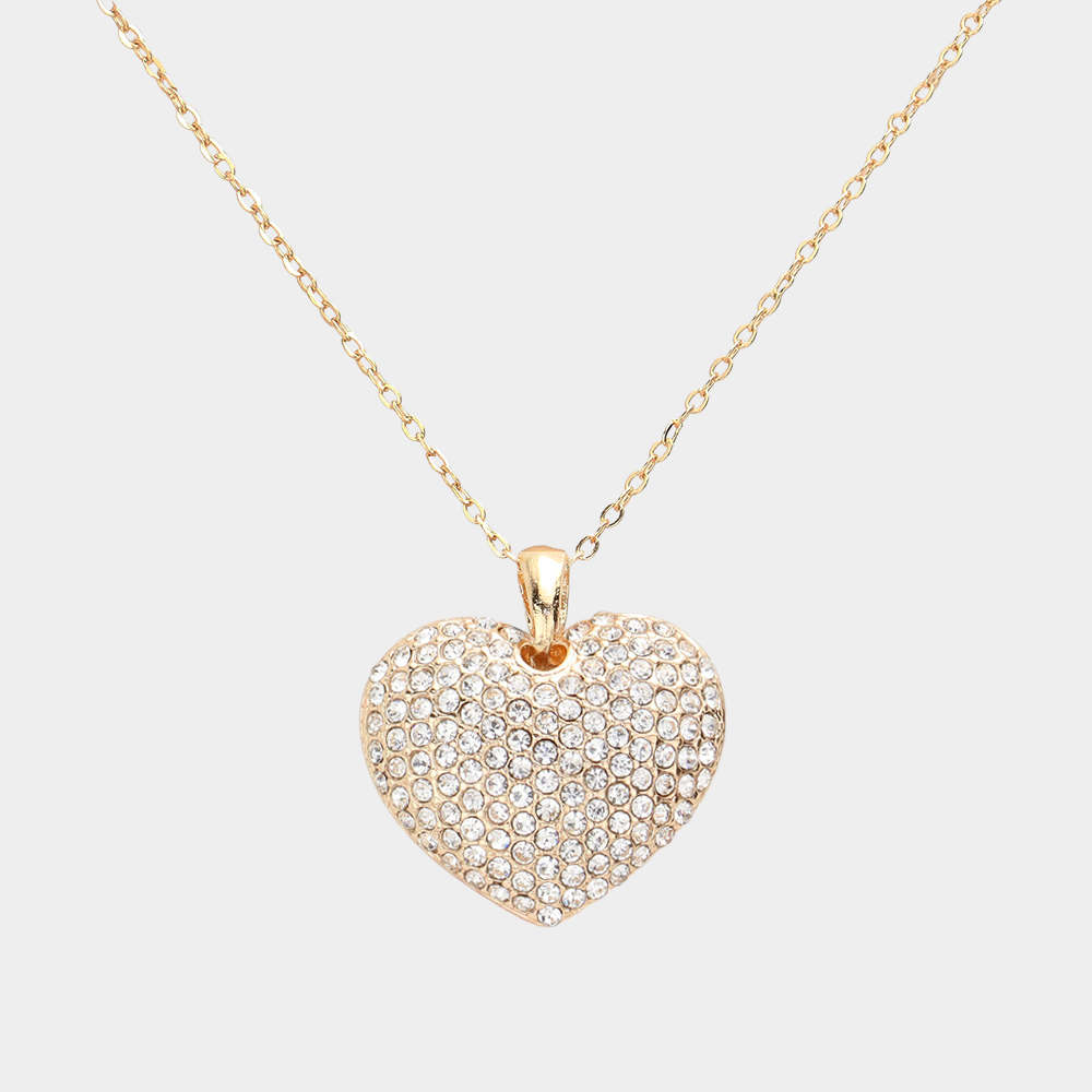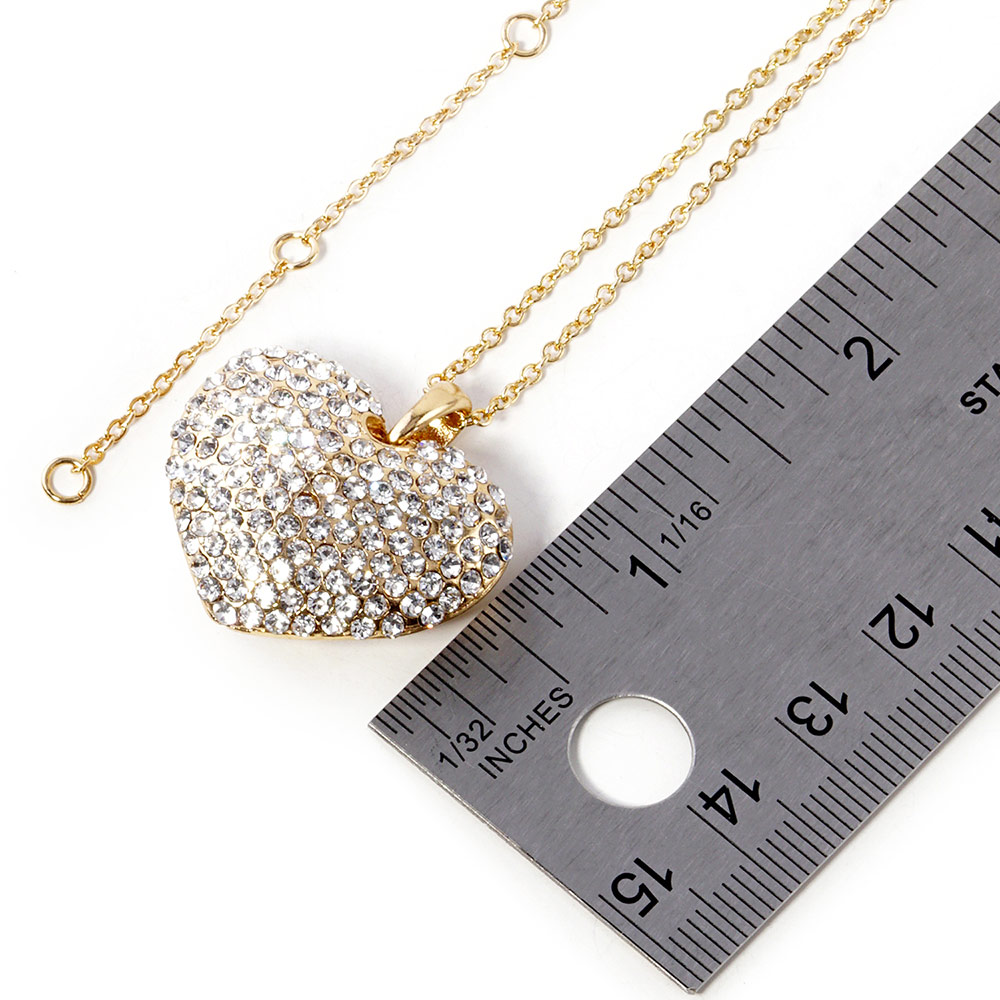 Crystal Rhinestone Pave Heart Pendant Necklace