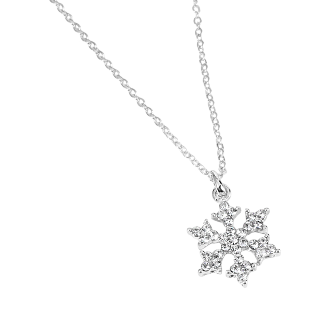 Details • Necklace Size : 16" + 2" L • Pendant Size : 0.6" X 0.75" • This snowflake pendant necklace shines with sparkling accents, capturing the beauty of winter in a timeless design. A delicate and versatile piece, perfect for adding a touch of seasonal charm to everyday outfits or gifting as a symbol of uniqueness. • Lead and Nickel Compliant