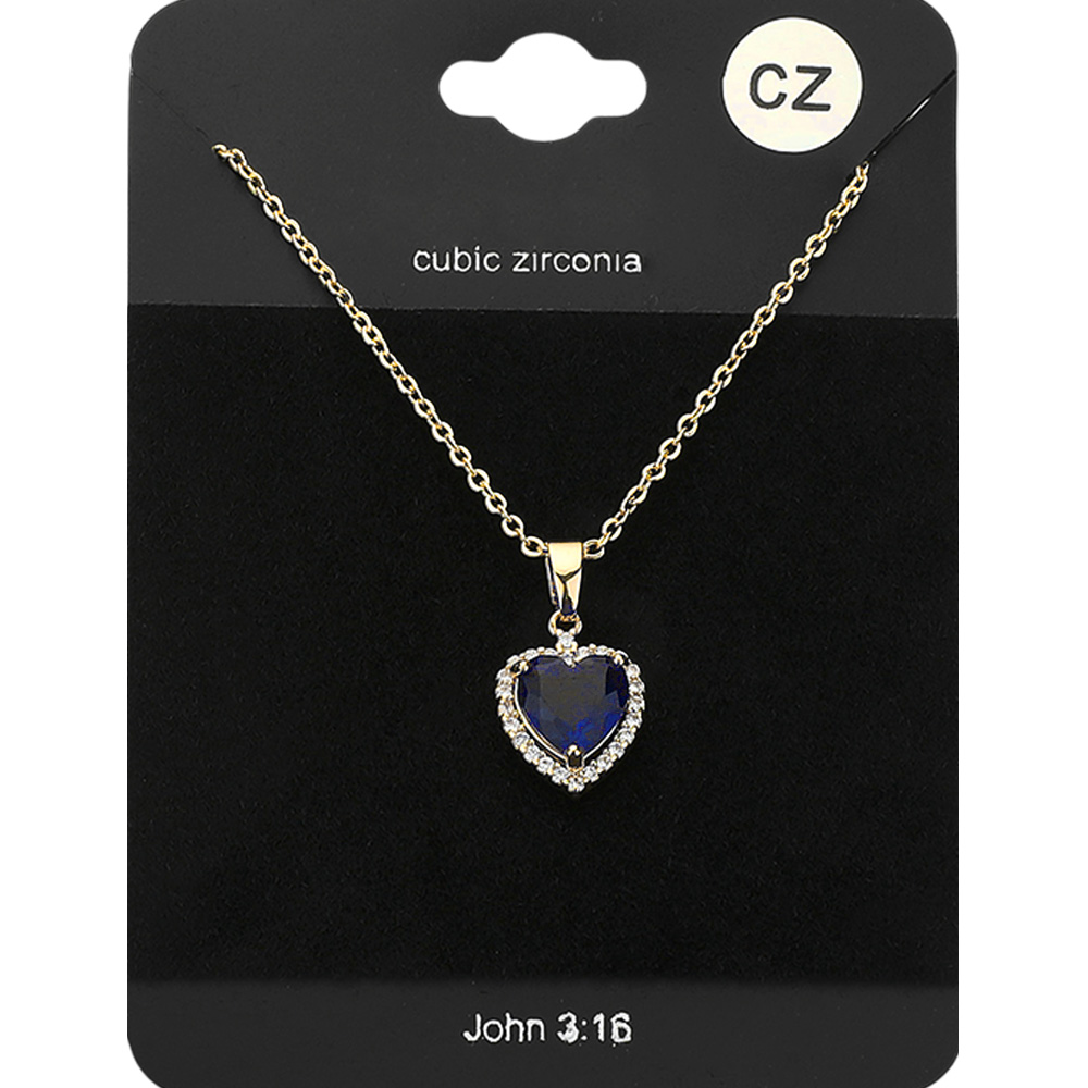 Stainless Steel CZ Stone Paved Heart Pendant Necklace
